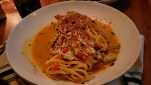 To start we ordered Meatballs, Crispy Potatoes and Garlic Butter Bruschetta. For our entrees, we had the Grilled Branzino, Cacio e Pepe, Tagilatelle and Crab Linguine. Finally, I shared desert with another in our party and I believe it was the Butterscotch Budino