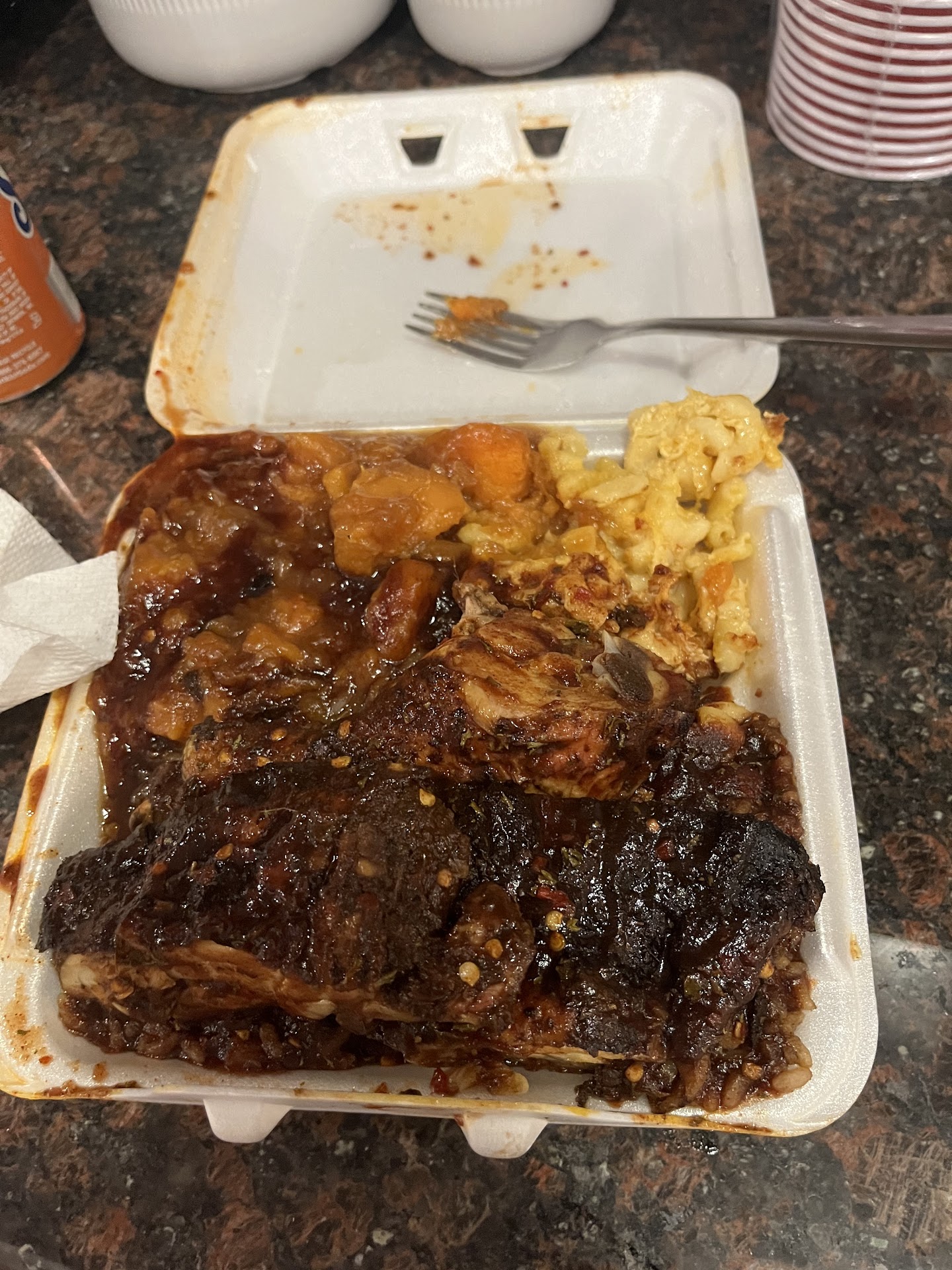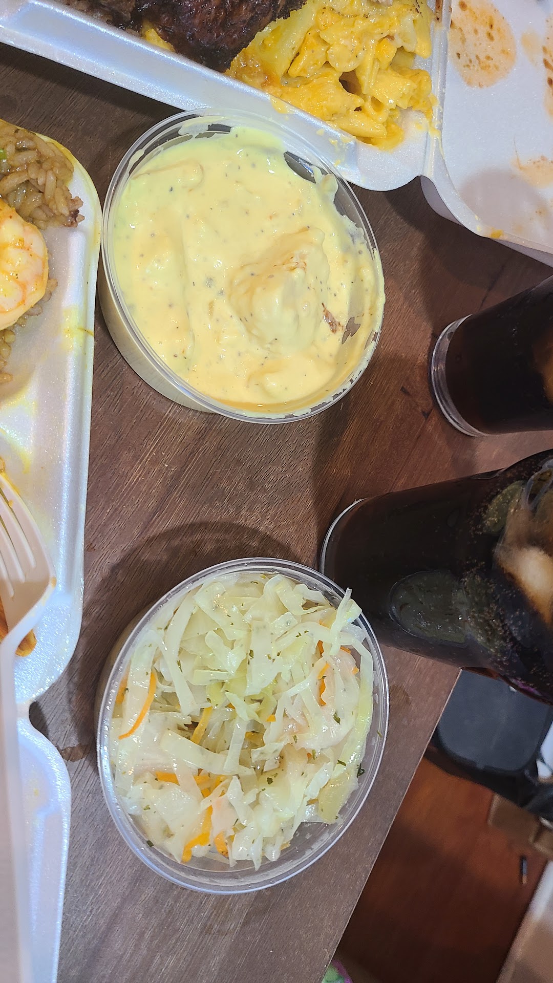 Read moreI stopped here to try them out for lunch and leftovers since I hurt my hand and did not want to make do with my cooking. They are about there business and I'm assuming Black owned. The kitchen is in view of the ordering area. Looked clean and nothing off putting. I ordered the large salmon platter with included 3 sides. I choose cabbage, macaroni and sweet potatoes. My nephew wanted the medium fried whiting and 3 sides greens, macaroni and sweet potatoes. They mistakenly boxes up the small whiting but still included the 3rd side. Pro's and reason for the 4-stars - generous portions, the cabbage was freakin' amazing, loved the salmon, the whiting was delicious, greens are not my fav food but my sister likes them. They taste like they use vinegar to flavor them. It's a preference thing. Con's - the package some were wrapped other were not and the leaked. The macaroni and cheese tasted like it is made with cheese sauce and my family prefers cheddar mixed with other real cheeses and baked, the sweet potatoes are pureed with a seasoning I am not able to identify. Our fam was not a fan of the mac or the potatoes. I'm pescatarian and this has more seafood options than most Caribbean spots. I will definitely return for the fish and cabbage. I will also try more of the menu options. I will return and would recommend this place. They staff was patient and friendly. Don't forget to order your...