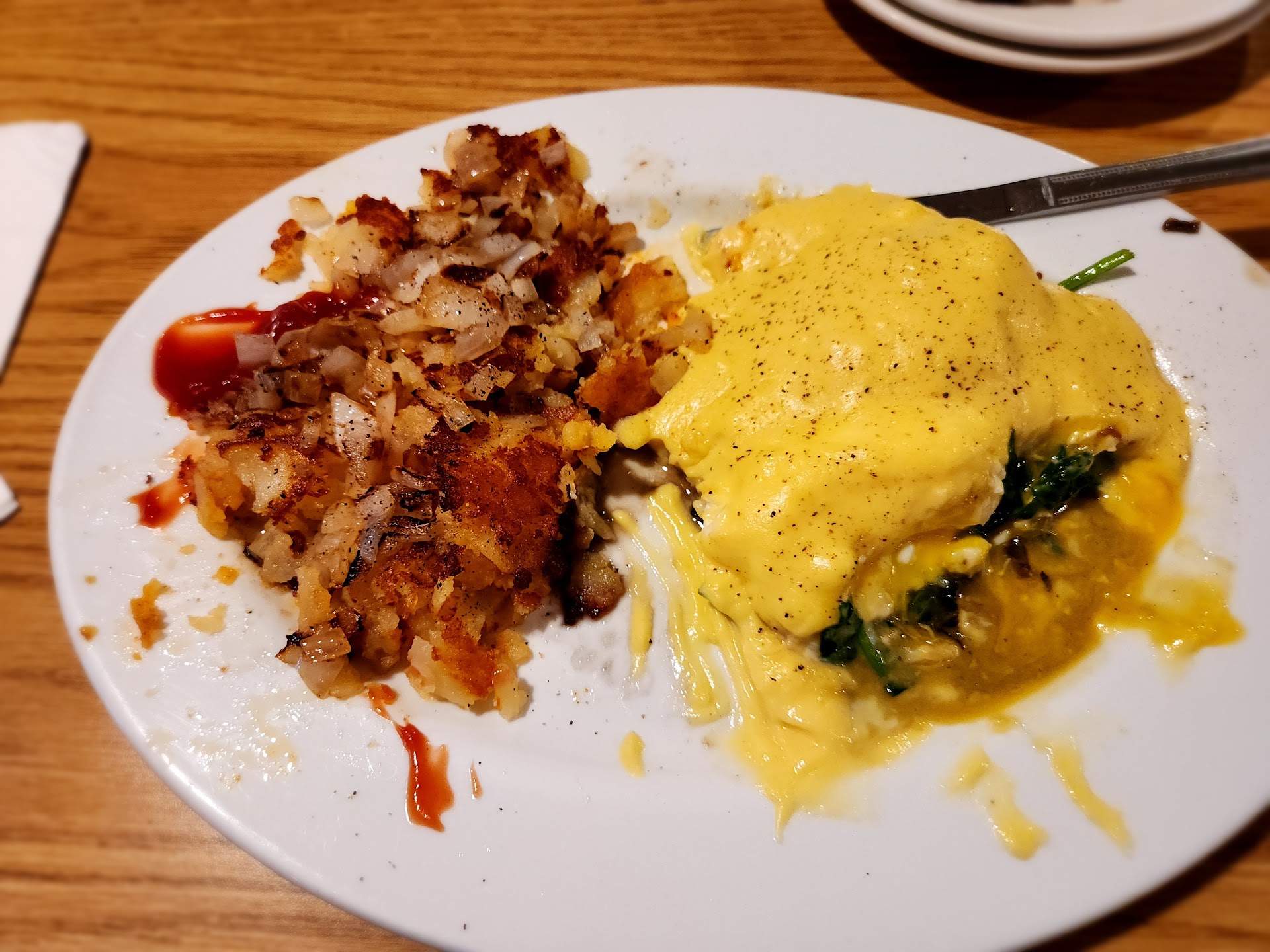 Read moreUsed to love this place for a Sunday morning " nobody feels like cooking " breakfast . This morning was a first time in a long time, and will be the last time for a very long time. For a Sunday morning around 10am , it wasn't crowded at all. Lady took us 3 right to a booth , and that's where it started heading south . Had to wait to wipe the syrup and trash off the seats , then right into the waitress with an attitude. Got asked 3 times if we're ready to order while we are still taking jackets off and opening menus . Get through that in one piece , all the while looking forward to our breakfast platters . Disappointment comes with the delivery of three plates of overcooked sausage, bacon, and potatoes. Honestly preferable to the vastly undercooked eggs though. Now the French toast??? Perfection ... go figure. The final straw is the bill . I've never seen this but there's 2 totals ...one for cash , one for cards ... like I'm getting gas or something smdh ! I usually tip in cash , pay with card but not here . It's actually cheaper overall to pay the 2.50 fee to use their ATM to grab cash and do everything cash . Next week we're heading down further and going to Andy's. Got more than a few good memories here but its not that...