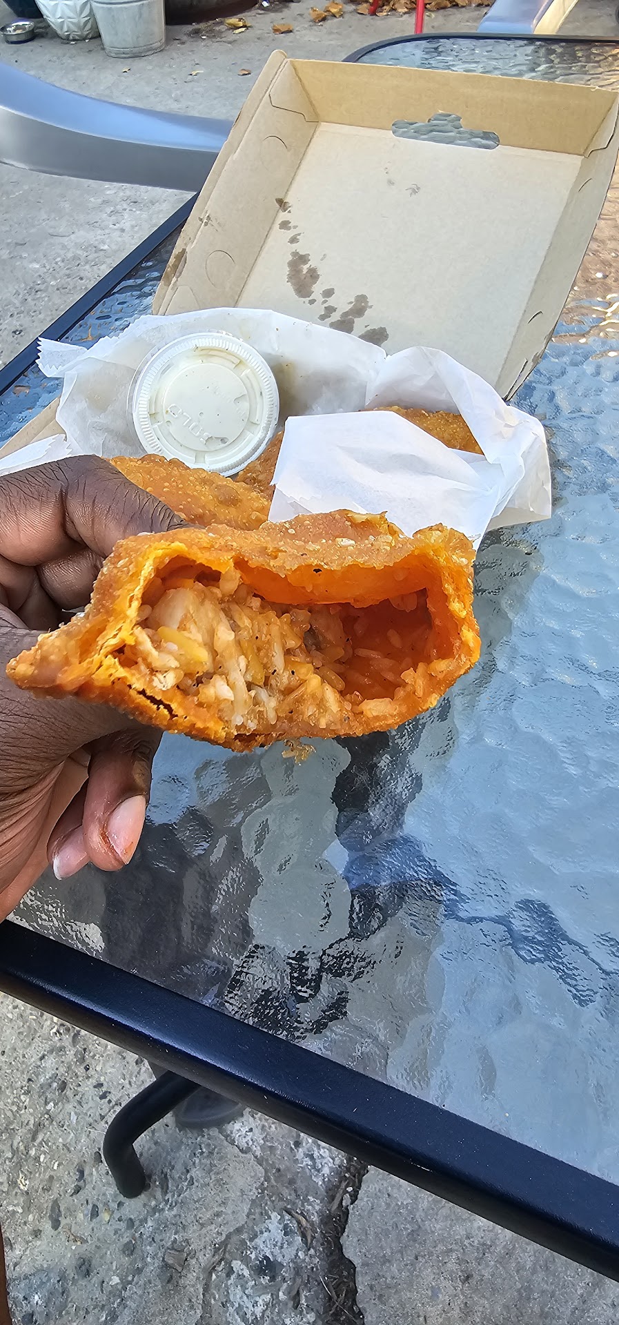 The chicken was perfectly cooked. By comparison to that rib. Nice and most. Even the wings on the bird had just the right amount of moisture, which I have found by many places hard to achieve. The breast was moist. Just excellent. It too had a bit of spice. Again. Heavy on the black pepper. But still edible AND COLD. It was a nice sized bird too. Not the smaller ones you buy from the market. This chicken would have been perfection if it wasn't cold.
