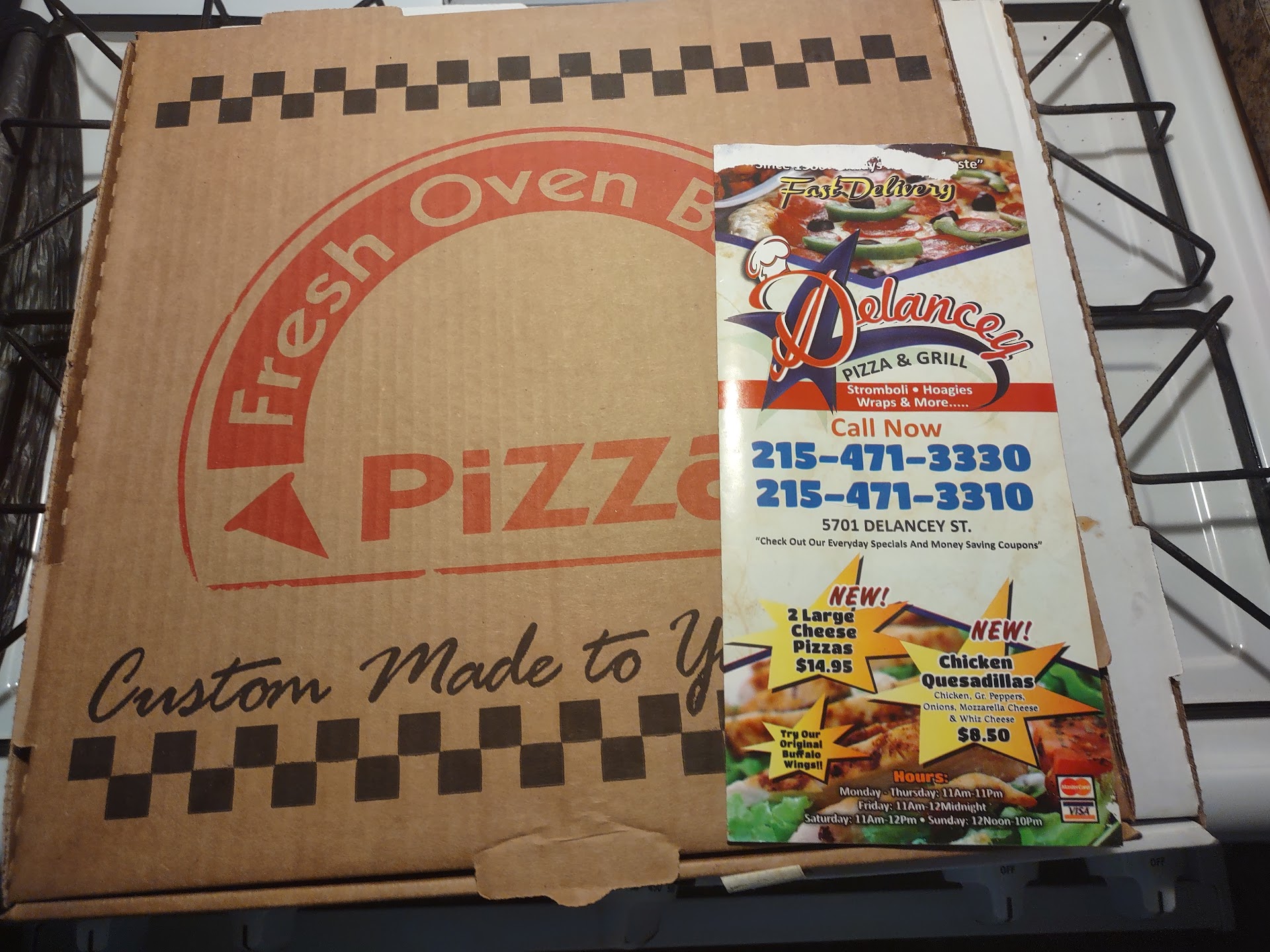 Ā Ā Ā Read morePizza was delicious but my half sausage, half plain large pizza plus a 2 litre Pepsi cost me $25. That included delivery and tip. Problem is the next day I got a large pizza with sausage, mushroom, onion and peppers came to $15 with delivery and tip from a different place. They even substituted sausage for pepperoni to make the pizza cheaper. Here's where it's gets ugly. The pizza box on the left was my supposedly large pizza from Delancey and the box on the right was from large pizza from the other place. See a big difference? The large very expensive half sausage, half plain was not a large 16inch pizza but a 14inch medium pizza from Dalancey!!! The pizza on the right was a real 16inch large pizza! What a rip off of price and size!!! Beware of rip off delivery prices and medium not...