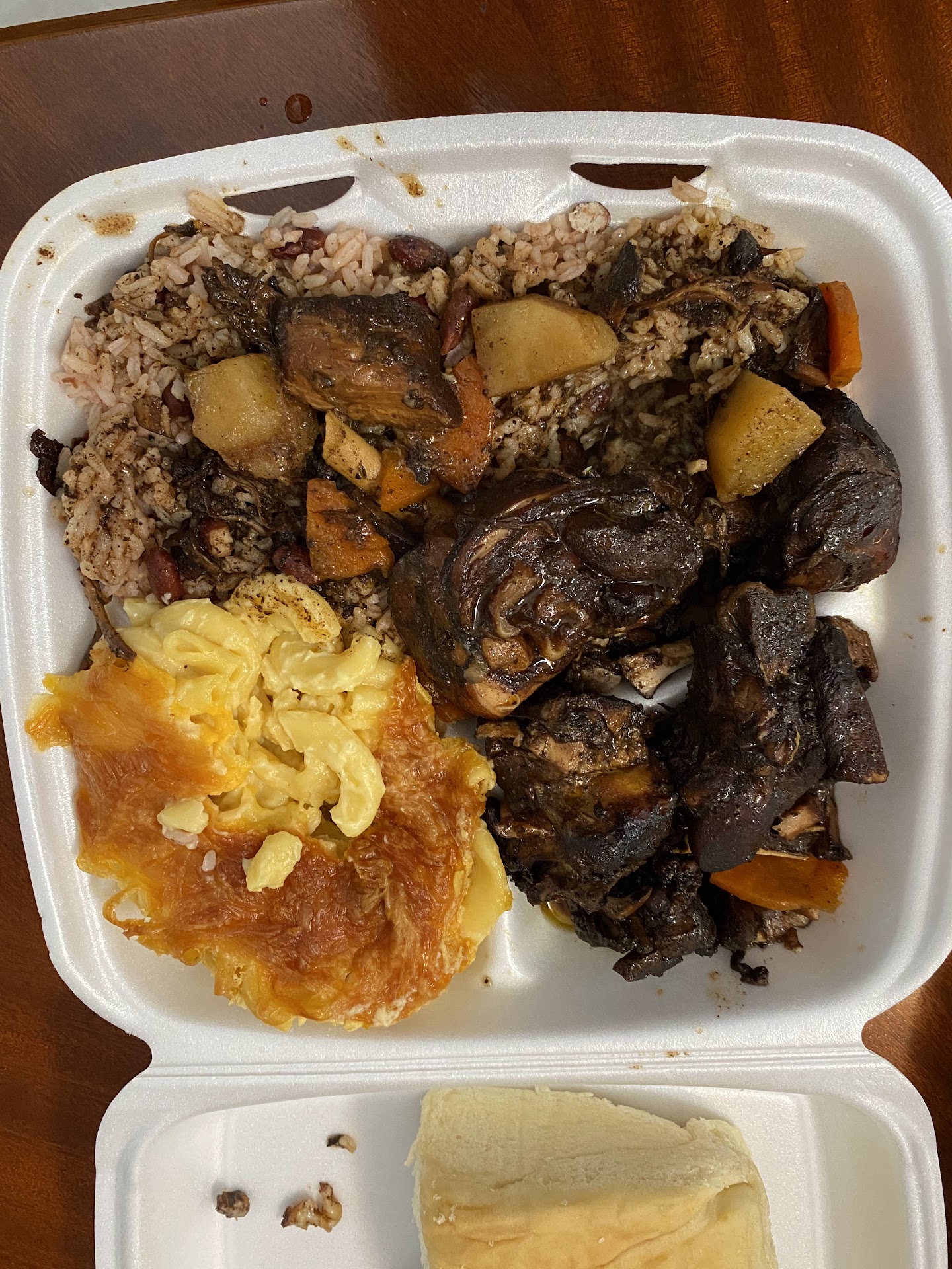 Read moreDisappointed, looking at the reviews I thought the food would have been much better. I ordered the oxtail platter with yams and Mac for $13. Everything tasted flavorless. The oxtail bone to meat ratio wasn’t terrible I had way more bone than meat. Not the mention there was no flavor. The Mac and cheese was runny and also lacked flavor. The sweet potatoes were not sweet enough. This place is located right under the subway and parking is scarce. Also this establishment is not placed in the safest location. You do get a good portion for your money but the food is nasty. I wouldn’t recommend or...