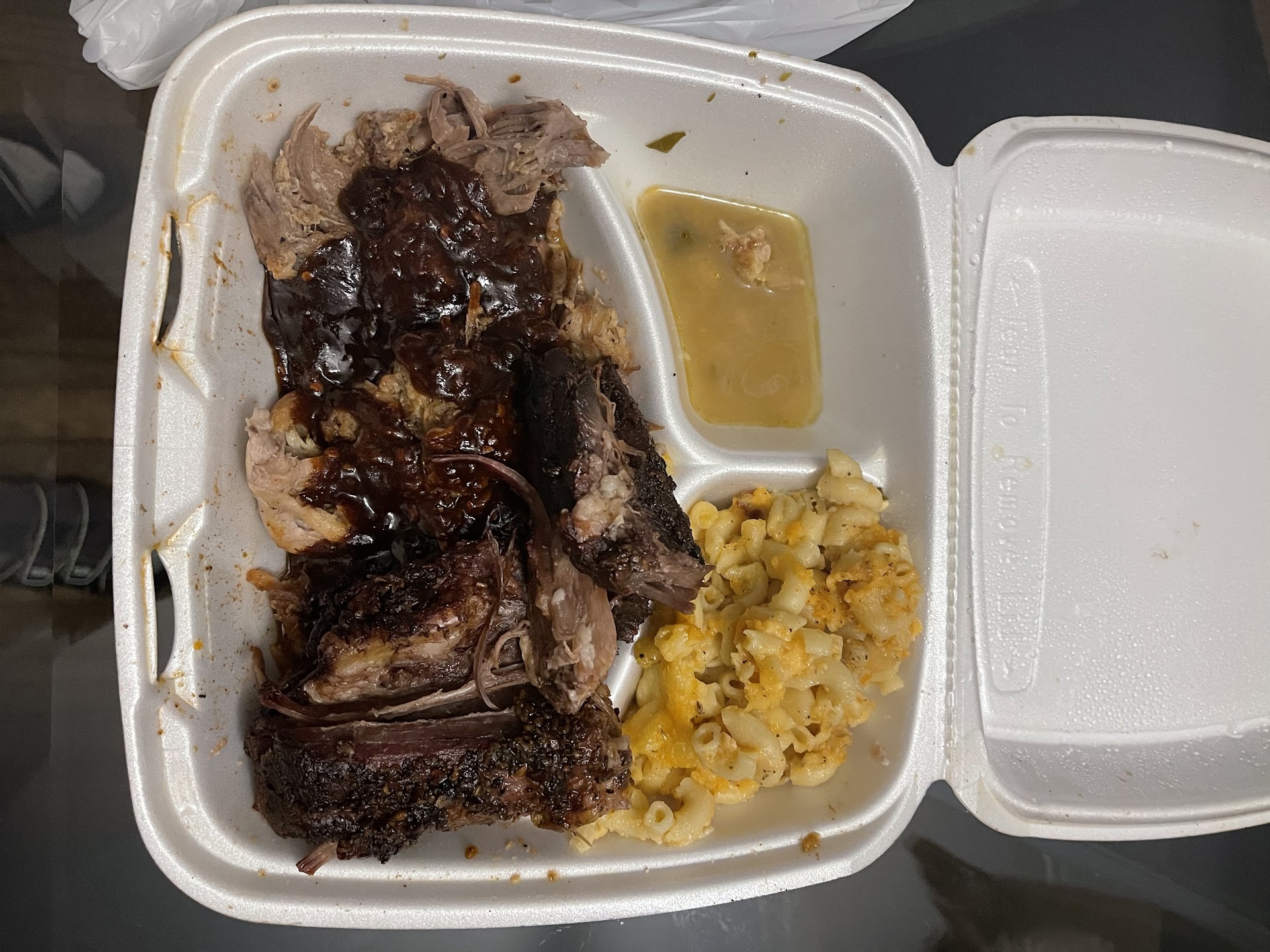 Read moreLet me start off saying that I really enjoyed my experience with this business. I got greens, mac and cheese, ribs, and a pulled pork sandwich. The greens were very good, not over cooked or under seasoned very good even better once I added hot sauce. The Mac and Cheese was okay maybe it's just me but it seemed like it could use a little bit more cheese and some black pepper and it would have been perfect. The ribs were good texturally,, and the flavor was nice but the BBQ sauce to me needed a little bit more of something plus I asked for extra sauce and didn't get that much. As for the pulled pork sandwich the flavor was good, the texture was good, but the sauce was lacking and the roll was as hard as a brick. I had to feed it to the birds. Now after adding some of my own homemade sauce just to add to the flavor of the pulled pork it was perfect. Unless you have an extremely low tolerance for spice always get the spicy sauce become mild is like drinking a cool glass of water. I wish that I had taken pictures of my meal but I was excited about trying a new place and forgot. I most definitely will be back to give it another try to see the consistency of the product and add to my order for more variety. I really believe that folks should give them a try, and I you do add your pictures and let me know...