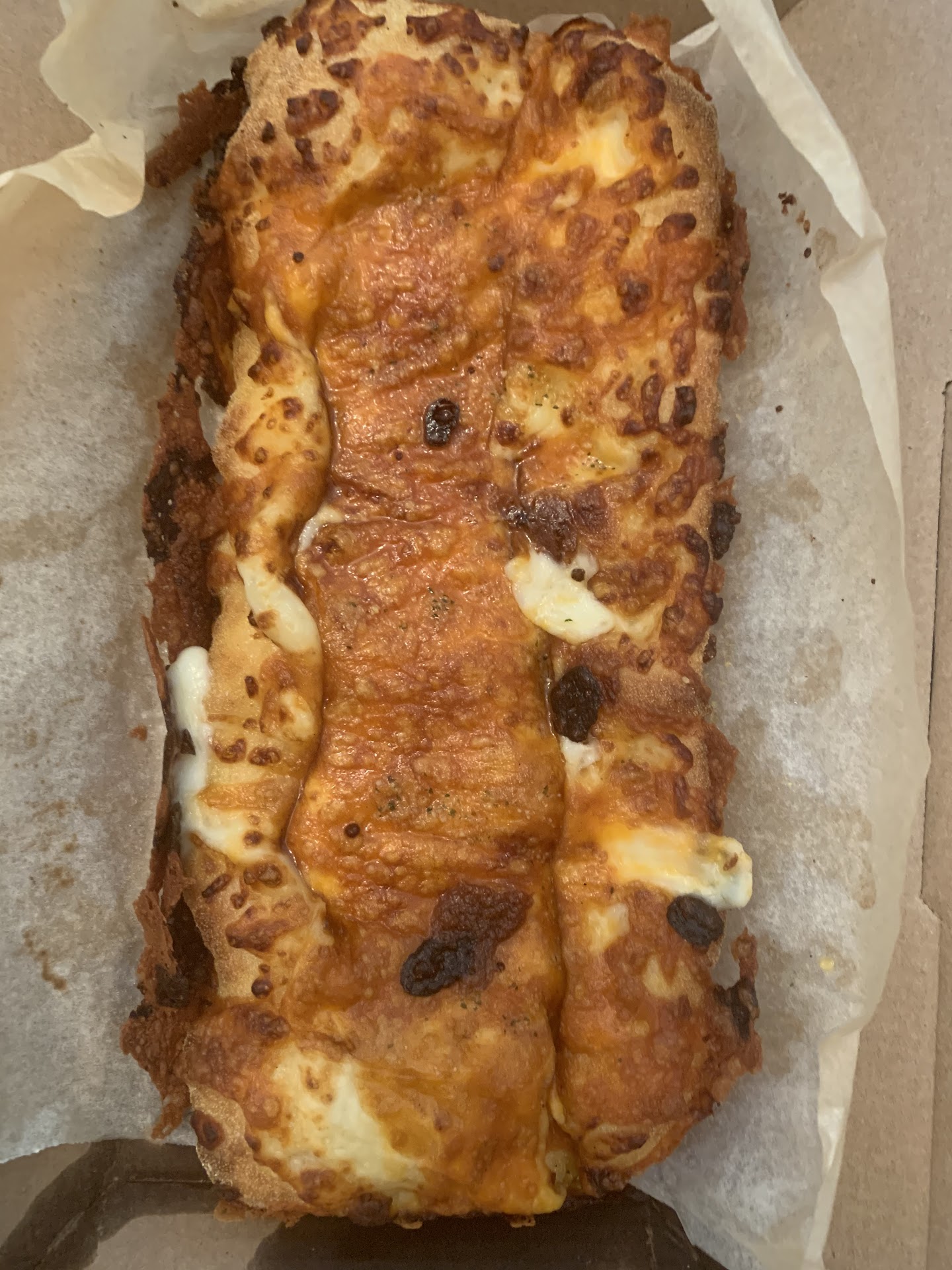 This is so disappointing. The cheesy bread that they quality checked was burnt to crisps and doesn't even look like cheesy bread anymore. I don't know what happened, but this shouldn't have made it past the quality check. I actually have other complaints as well, but I never bothered to send them in since they weren't as bad as this recent order they sent me. The orders that I have been placing from this store has been bad overall. For one, they never put enough toppings. Whenever I want mushrooms, they only add 8-10 pieces of mushrooms for a medium pizza, so that's like 2 pieces per slice, it's ridiculous. The mushrooms are tiny too, so the amount I get is so insignificant. I also add other toppings as well and yet, the pizza still looks plain. Even when I add "extra" toppings it looks the exact same. Second of all, there is never a delivery driver at this location.