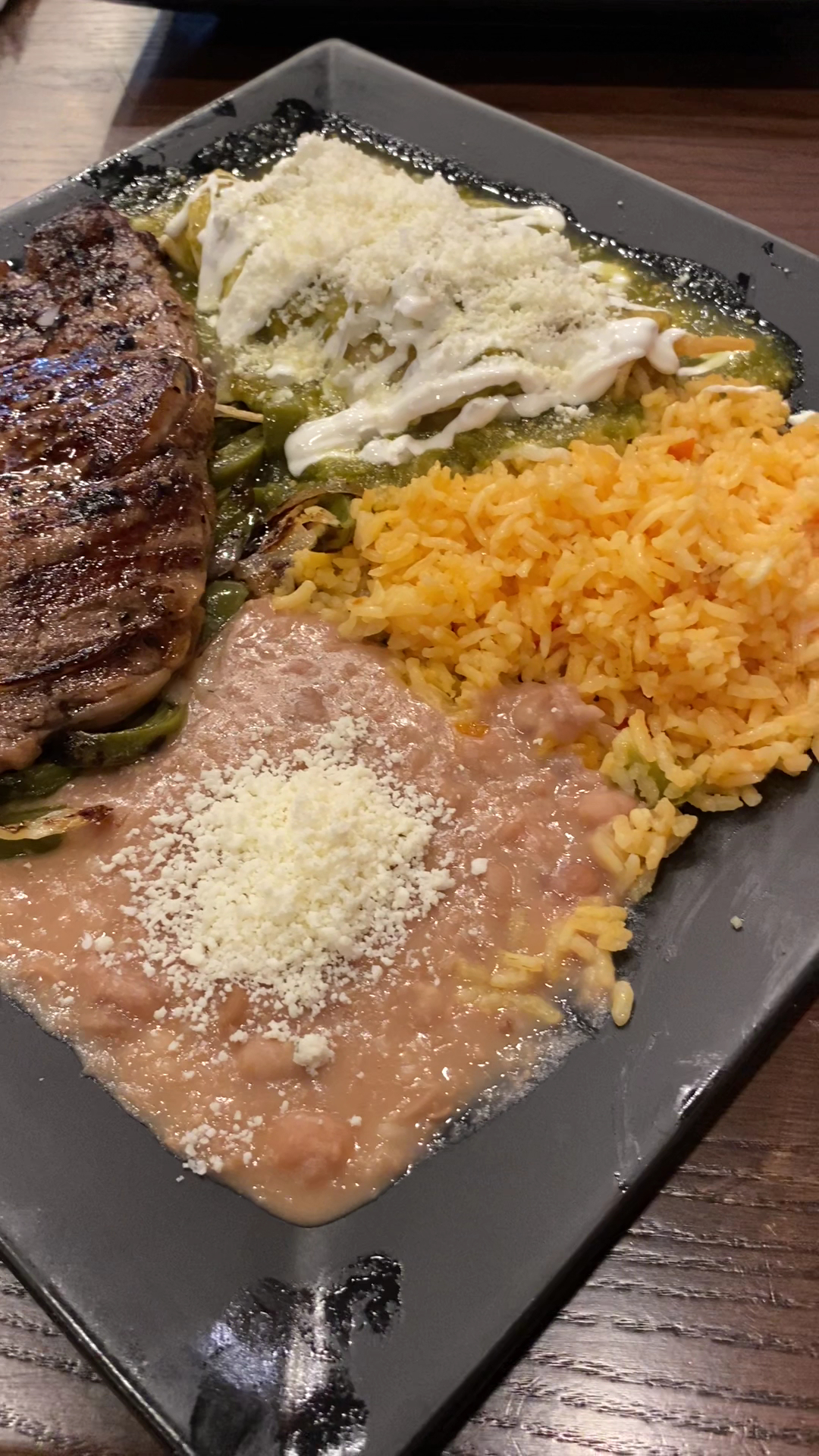 The Birria burrito was good but lacked any sides. It had a tasty dipping sauce. The steak enchilada dish was disappointing. The rice and beans were cold and bland. My steak enchiladas was actually a cheese enchiladas with steak and green sauce spread on top. Nothing else was inside my tortilla. The green sauce was a little too acidic.
