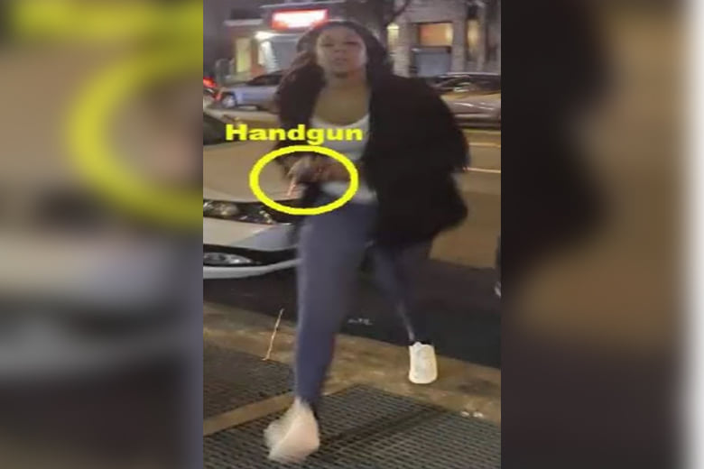 Suspect Description: Black female, medium brown complexion, 6’0”-6’1”, medium build, straight black hair, black jacket with fringe hanging from the shoulder and arms, white shirt, blue jeans and white sneakers. Vehicle Description: Dark or charcoal grey 2014-2016 Lincoln MKS, 4 door, silver trim with a temporary paper tag on it with an inoperable passenger side headlight.