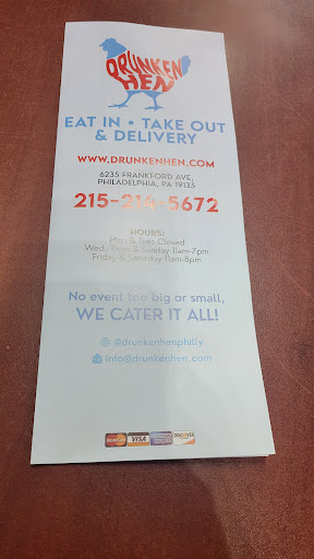 Read moreHey Philly, don’t sleep on the Drunken Hen. Located in the old Grey Lodge this place is a hidden gem! Probably the best burger in the area and definitely the best on the block! Small and run by the owners this place not only packs the flavor but packs the personality. People who care about their patrons and want nothing more but serve satisfying food.