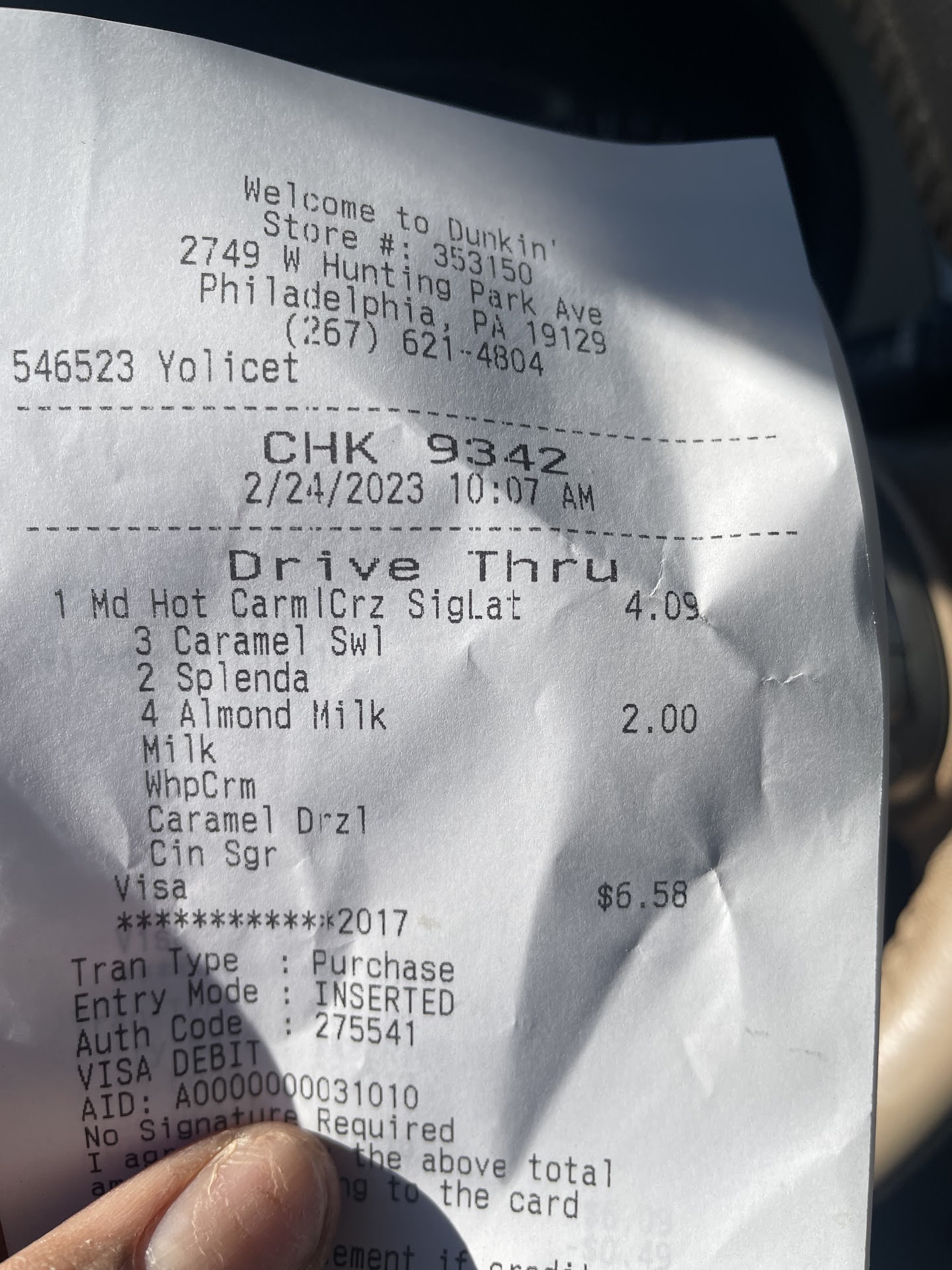 Read moreI ordered the mobile app a medium hot chocolate and a donut. Was in the drive-thru line for about 15 minutes in the line wasn't really moving. Figured I just go in and get my hot chocolate but the door was locked and a sign was on the door saying the lobby was closed. The young lady that was there did a hand motion for me to go through the drive-thru. Needless to say it 40 minutes in the drive-thru from me to get my hot chocolate and donut. When I asked the young lady why did it take so long She said that they were severely short staffed. To be honest I think she was the only one in there. Taking orders making the food and then cashing out the customers. This is very very sad. Due to the fact that this Dunkin donuts is not in the best neighborhoods it's a shame that whoever owns this establishment left this person in their by themselves to man the store just so they can make some money. I will never visit this Dunkin'...