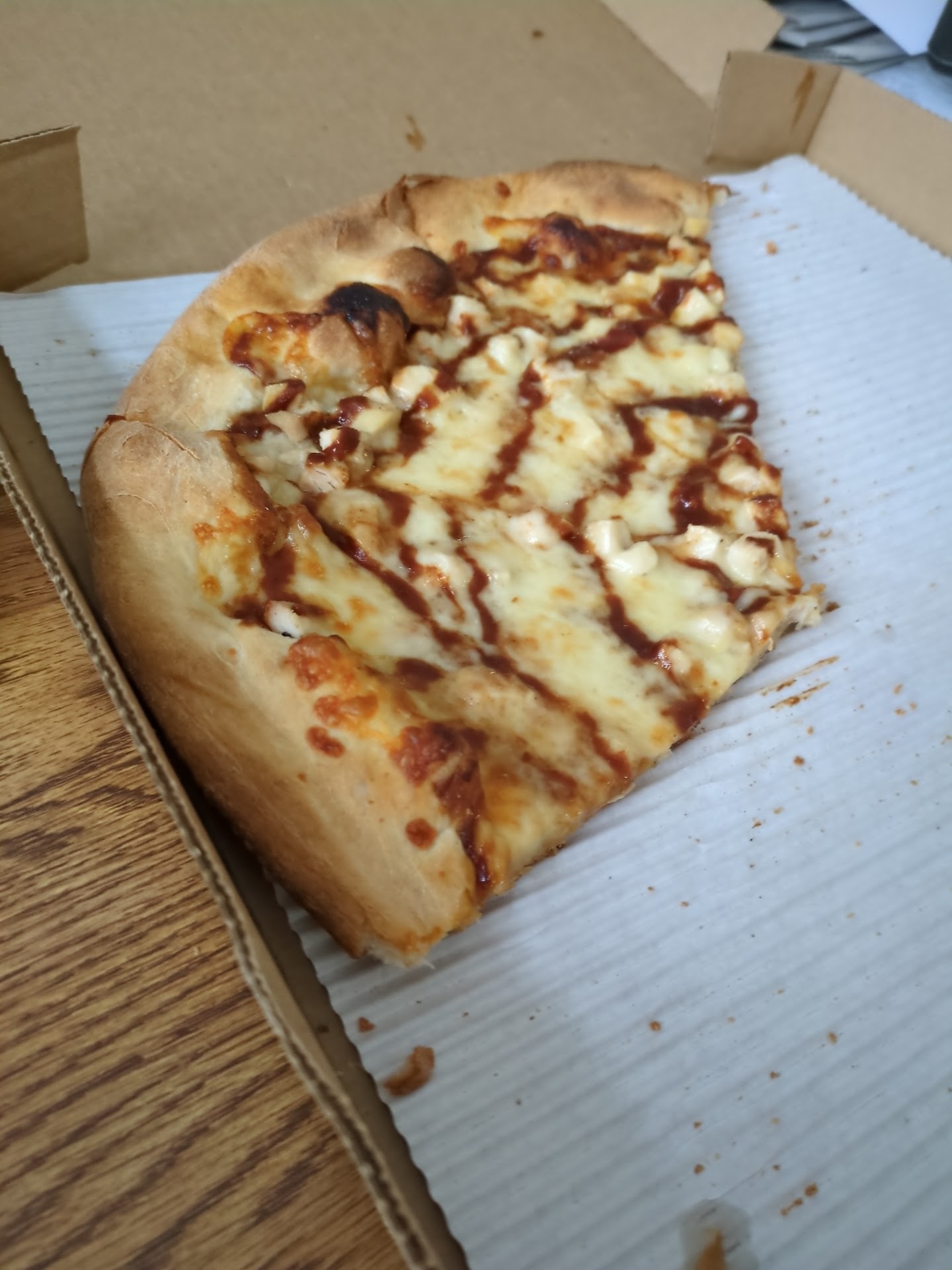 Read moreIt's very mediocre, but i wouldn't say it's terrible. My main complaint is that it is bland/under seasoned. I added garlic, oregano, red pepper flakes, and parmesan and it still tasted bland. On the slice i got with chicken and peppers, The toppings were not seasoned which really didn't help them out with the already bland pizza. The store front is okay, and the inside looks like it was nice at one point, but it's a little dated and could use some TLC and deep cleaning. There is also an interesting smell combined with the smell of bleach, so maybe it's time to pull out the appliances and clean behind things.