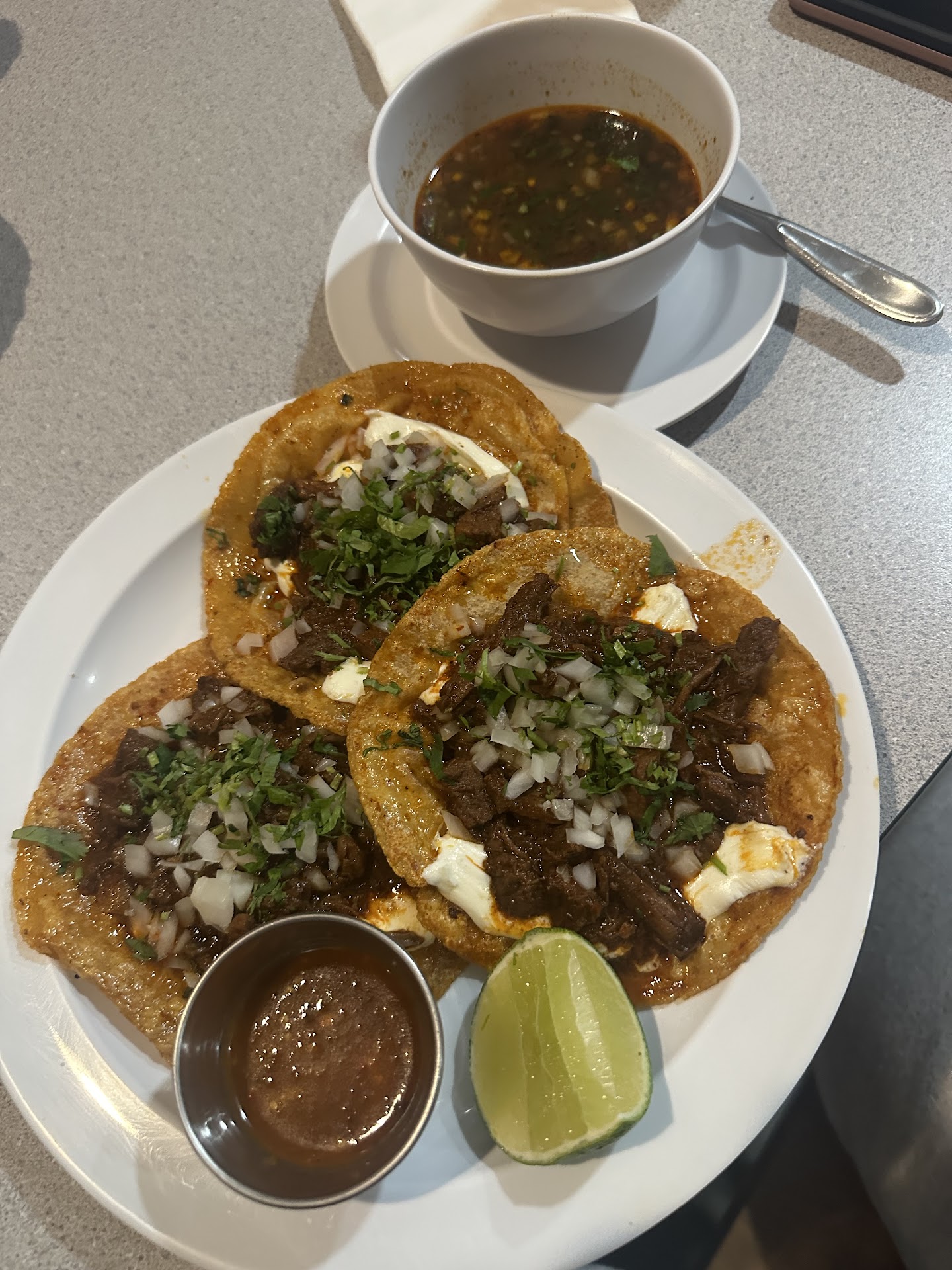 Read moreMy party got here around 515pm on 5/5/25. It was 4 of us. There was only one other table being served so the restaurant was pretty empty. We sat down at an empty table that wasn’t very clean and we had to use alcohol wipes to wipe off crumbs from the table. We were waiting for about 10 minutes before the owner of the restaurant finally came to take our order. He is very nice. However, service here is very slow! It took another 20 minutes just to bring out our chips and salsa. By the time we finally ordered our food, we had been at the restaurant for almost an hour. It probably took another half hour before our food finally came out. I understand it’s just one person making all of the food fresh in the kitchen, but the slow service is unacceptable. I saw so many patrons come in and then leave because the owner was not able to take their order in a timely manner. Other people waiting for a long time to get their carry out order. The restaurant really should hire more help. It’s just bad business making customers wait. I ended up ordering the birria tacos and although they were good, they certainly were not worth the almost 2 hour wait for them. It also did not fill me up at all and I had to order another meal after leaving. I probably would not...
