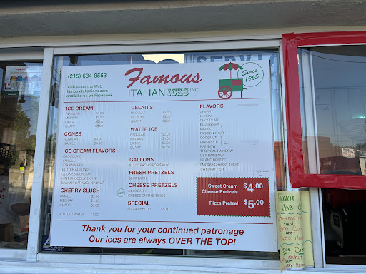 Read moreSo haven’t been to this water ice stand since I been a kid but been patronizing Rita’s but babyyy I must say famous Italian is the place to get an amazing water ice. Super delicious and super soft. I came on July 4th. But before I came I called to see if they were open and they missed my call and called me back and that step one of them having great customer service. My aunt got the 3 gallon for 30 dollars and I was tempted by their weekly special black cherry water ice. So I got the small one and babbyyyyyy it was delicious. Yummy. I will need to try it...