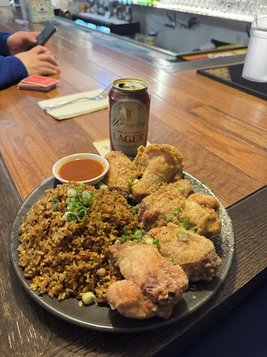 Read moreWalked in and at first I couldn't figure out what was going on. But there was karaoke happening! A small group of young people were passing the mic between each song. There was no indication at the time that we were welcome to sing too, until we were leaving, but I'm sure it was just a matter of us asking. The staff was VERY friendly and the kitchen was very accommodating and made me the most DELICIOUS veggie fried rice since I am plant based. I forgot there might be egg but I ate it anyway. The portion size was good. I was allergic to something in it though. Perhaps next time I will ask if they can substitute tamari for traditional soy sauce and/or black vinegar or leave it out altogether. I also get similar reactions to MSG so next time I will inquire about it and see if they can leave it out for me. My food got cold quickly. (Seems the heater may have been on the blink). But again it was SO delicious! Hubby had the cheese steak egg rolls and full moon chicken which he thoroughly enjoyed. He paid the dinner price for the chicken but felt like he received a lunch portion. But other than that there were no complaints. The bathroom was clean. Overall our experience was great. "Ferdy" our waiter, who was also doubling as a bartender, made it extra special. Will definitely return, with friends along. Suggestions are 1) put veggie fried rice on the menu and name it after me lol and maybe one other vegan dish like tofu or chickpea curry 2) give option to make certain dishes gluten free and/or egg free 3) bigger portions on the higher priced "dinner" dishes 4) let new guests know they can...