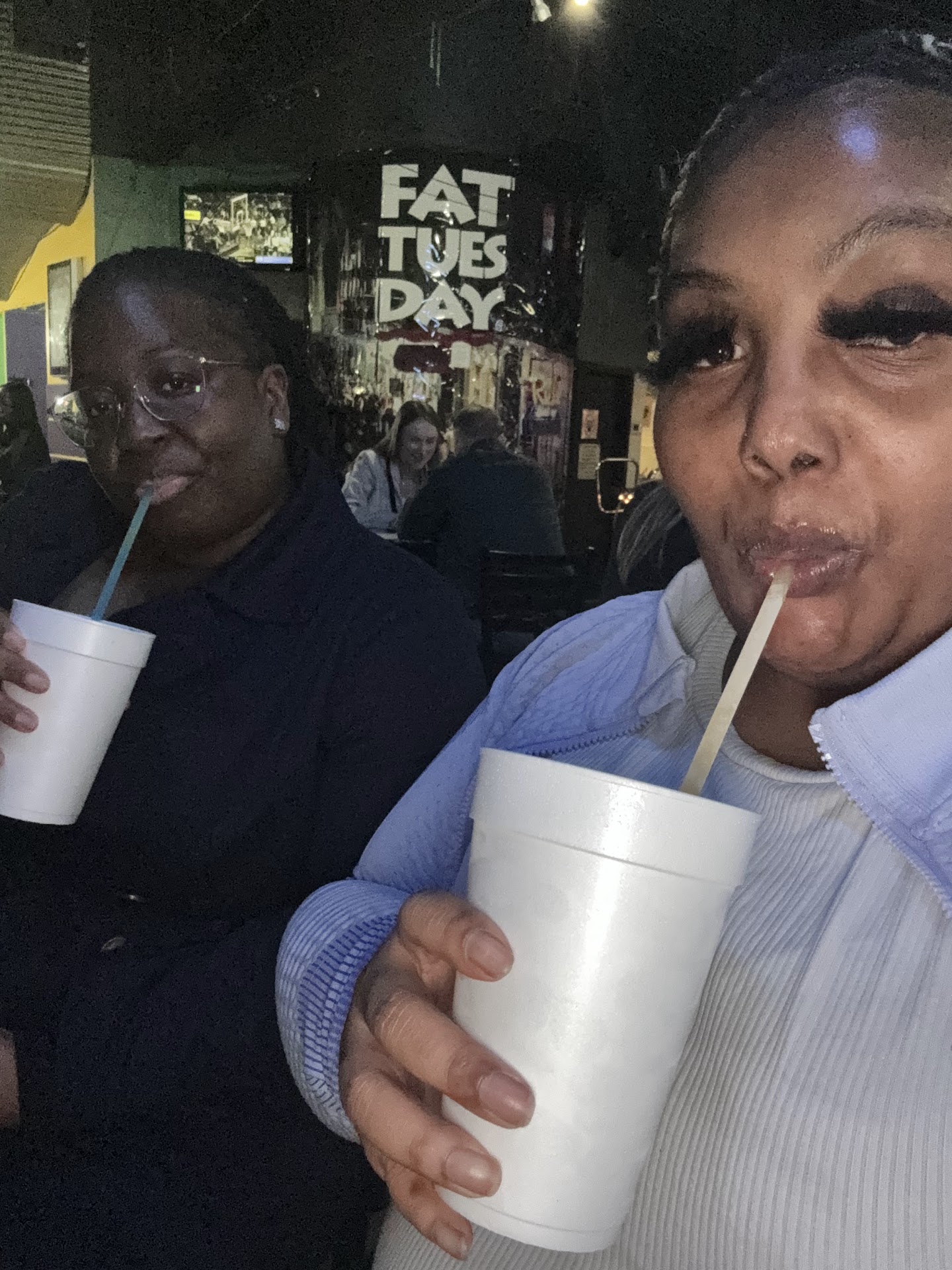 Read moreOk so me and my gf's decide to have some fun and dress in inflatable costumes and go here to drink. After a few of us get over being zipped in we go in and start ordering. My gf orders the most expensive drink, thinking that its the same price as posted pn the menu. The woman hands her the change and she questions it. Now my gf does talk loud and at u so good thing I was there to speak in a softer tone. By then the woman already took offense and I get it, but I did explain that she wasnt getting smart. So we order food. Well why when our food came it had to be my gf with a black hair in her tray on the side (not touching the food though). Mind you she has blonde hair and I have red in. So I let the woman know. She replies and says but the hair is not on the food. I say yes but who want to stare at a foriegn a inch away on the plate. She then says, she will put the food in a new paper tray but shes not cooking more because its not touching it. My gf ask for her money back and she says no. My gf says can she see the manager and she says she is the manager, now what. She told my gf to get up and talk to her like a real woman, my gf gets up and asked again a d she go get the change and throws it on the counter. My gf goes to ask someone else and she yells thats the door guy dummy. So im cool off fat tuesday if its that location. Her reaction to the hair says much more. Ill never be back...