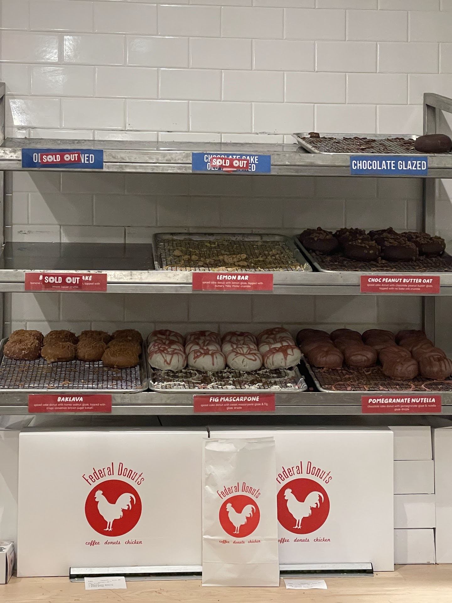 Read moreWas not staying that far from the Federal Donuts location and decided to come in for an afternoon donut. We ended up having a Pomegranate Nutella donut and Baklava donut. Both had a lot of flavor but were very dense and heavy, not light and airy as we are used to. The pomegranate nutella combination was not as we would have imagined and the flavors did not work for us. The pomegranate icing on it's own tasted delicious and the donut alone was flavorful but dense and dry. Wish I would have gotten the chocolate donut, but maybe next time. The Baklava donut did taste exactly like a baklava but was also a bit dry. In the end the glad we stopped in to try the donuts, though if we went back would try to go in the morning to try some of their popular donuts!