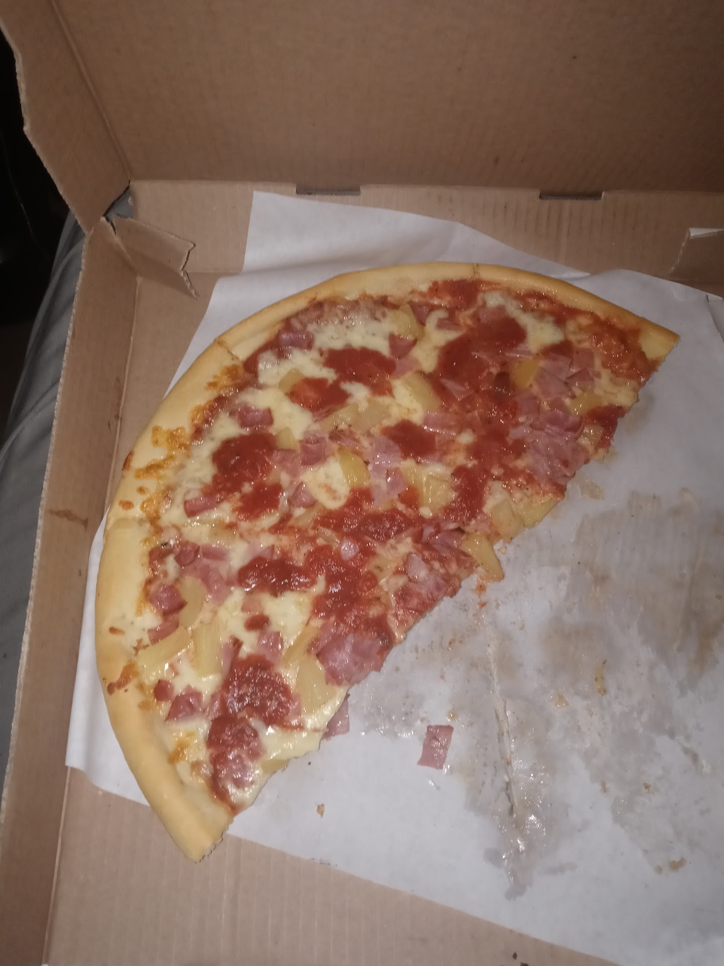 Ordered two large pizzas (sunday night) which were pretty mediocre, crust was too thick, no sauce, and the cheese tasted cheap didn't melt like you'd expect, edible but nothing great around the same ballpark as a frozen pizza. The pizza was cheap though and came on time, so you get what you pay for right? I wouldn't be writing this if I hadn't found a large piece of plastic in my slice and it had been taken care of properly.