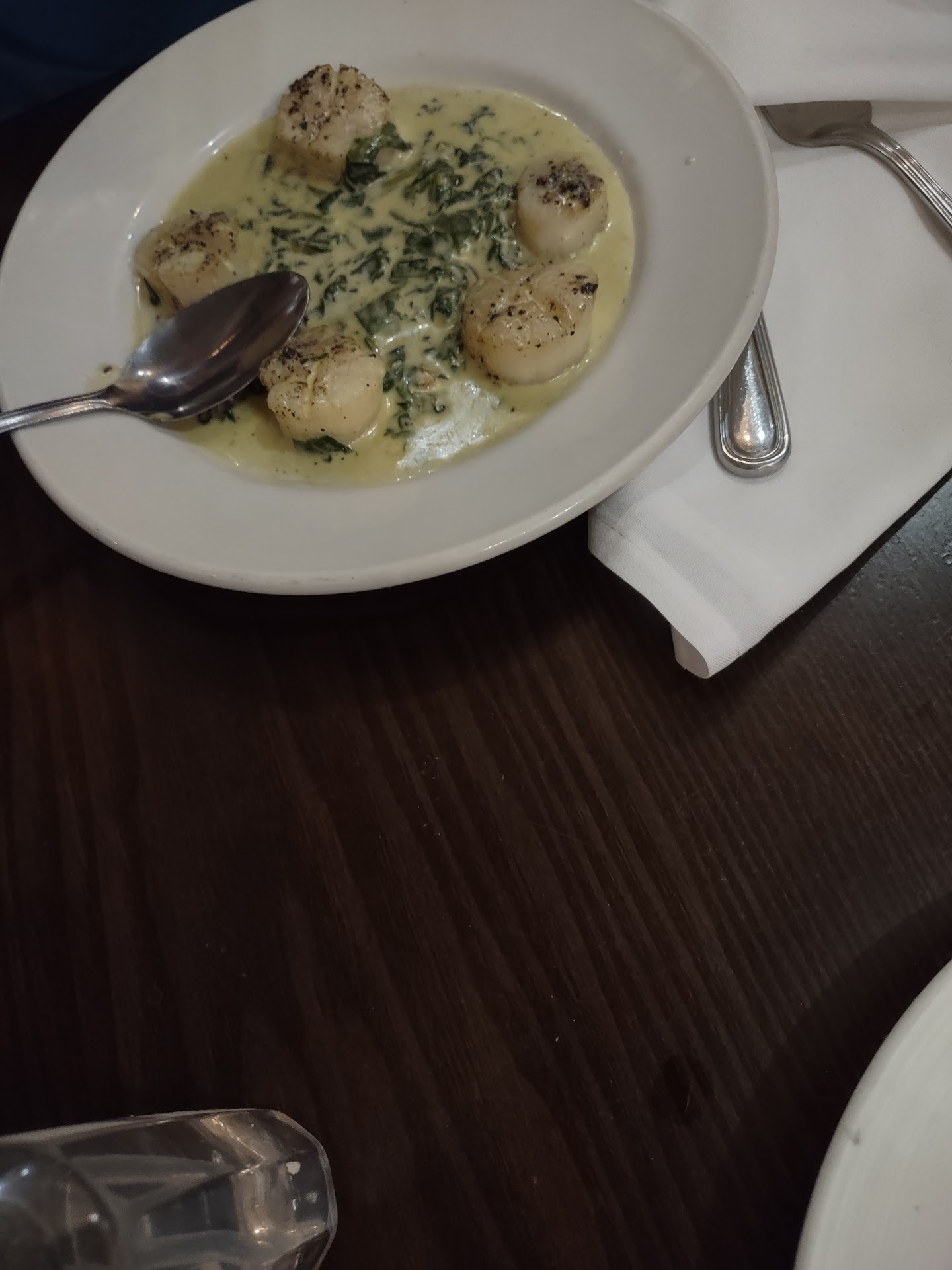 Appetizers: Scallops 6/10 Eggplant lasagna with no pasta 7/10 - very good and the cheese excellent but personally would like more mushrooms in it