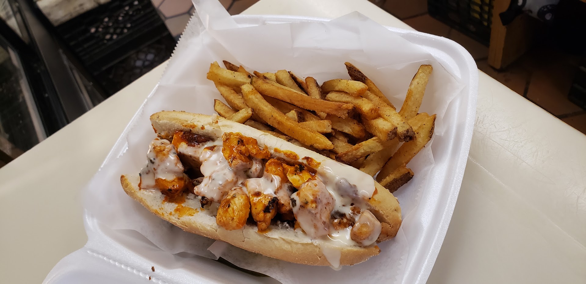The Food: The Buffalo Chicken Cheesesteak (sans blue cheese) was really good, unfortunately I'm allergic to something in it so I won't be able to get that again. I still finished the sandwich, so that should tell you how good it was! Also all the sandwiches come with fries and a pickle.