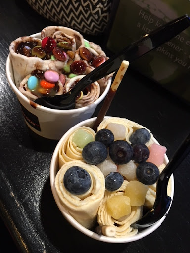 I've been here at least a half dozen times throughout the years and can attest to the quality of this establishment. There are many treat selections including the delicious rolled ice cream. If you've never had it, it's essentially ice creamed that's flattened and quick-frozen and mixed with whatever toppings you choose. It's then rolled up and squished into a cup.