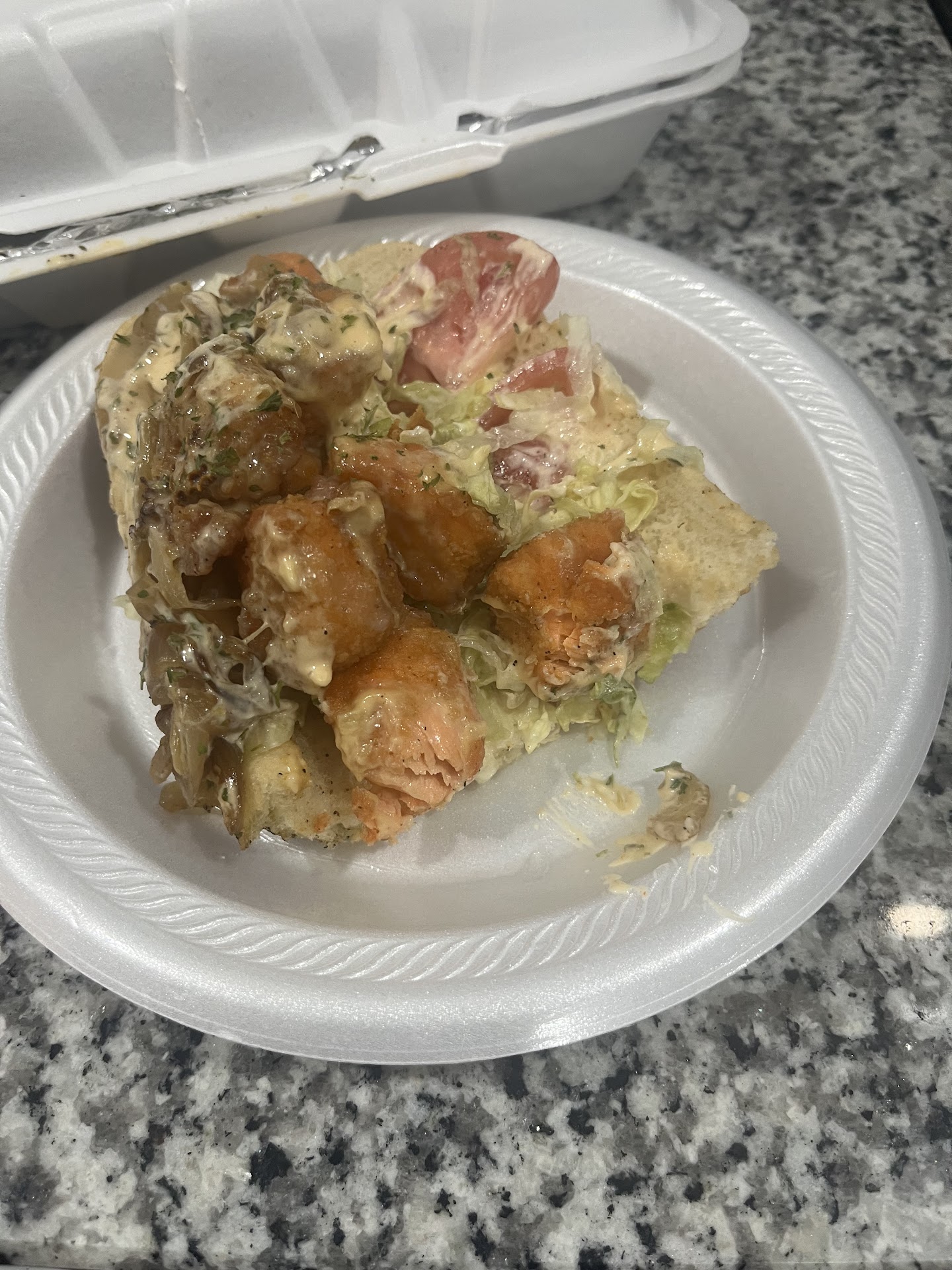 Now I heard they had run out of fried chicken while I was waiting for my food but since no one said anything to me I thought it didn’t apply to people who had already ordered. I did glance at my food before leaving but when I got home I noticed my fried chicken wasn’t wings but a half chicken, it’s wasn’t crispy and was extremely dry. I was livid. Don’t change and not tell me, and the chicken wasn’t fried the same way probably because they improvised but don’t do that without notifying the customer. You don’t get to make the choice for me. My entire meal was ruined by the long wait and them substituting my main without asking.