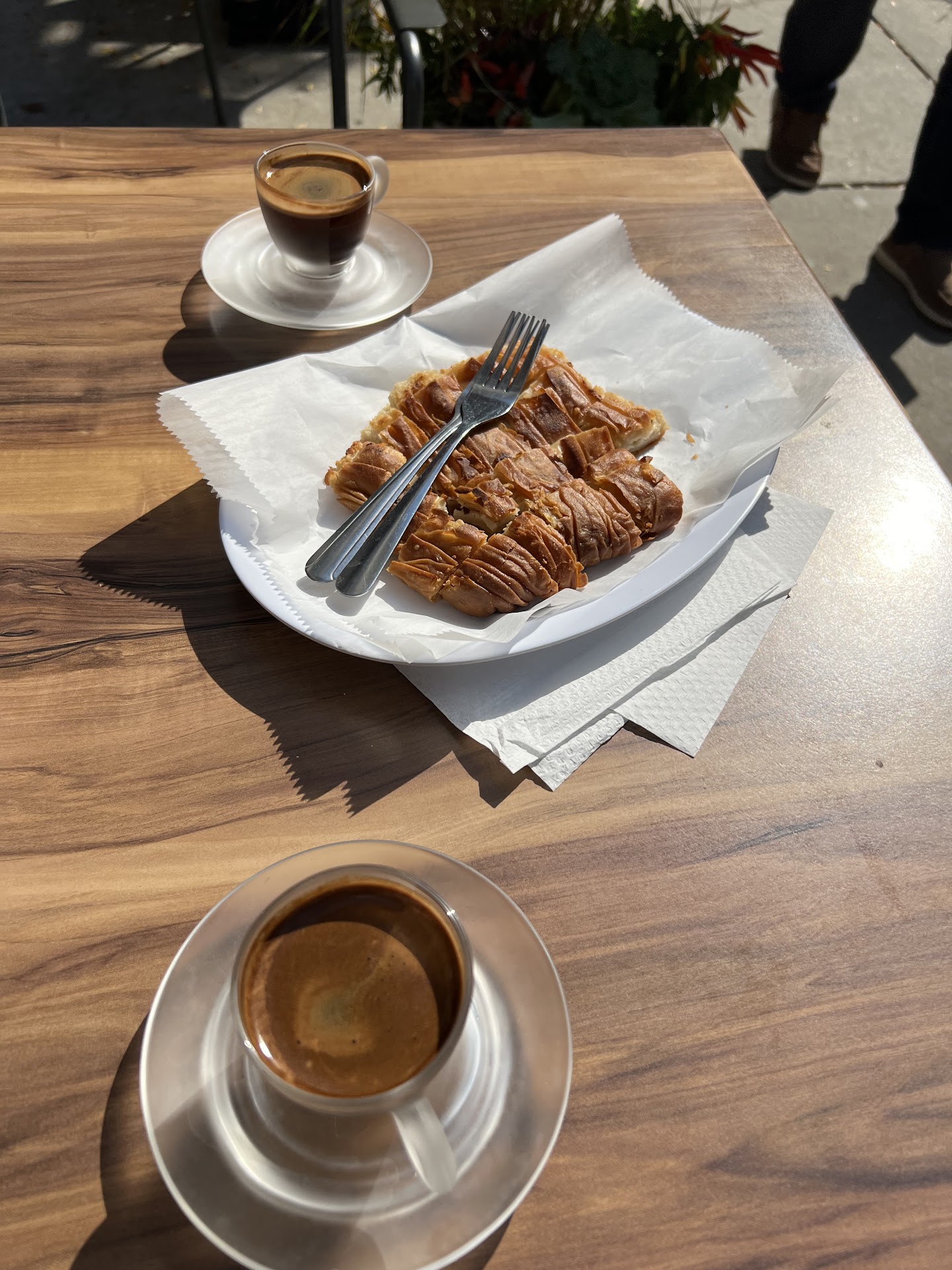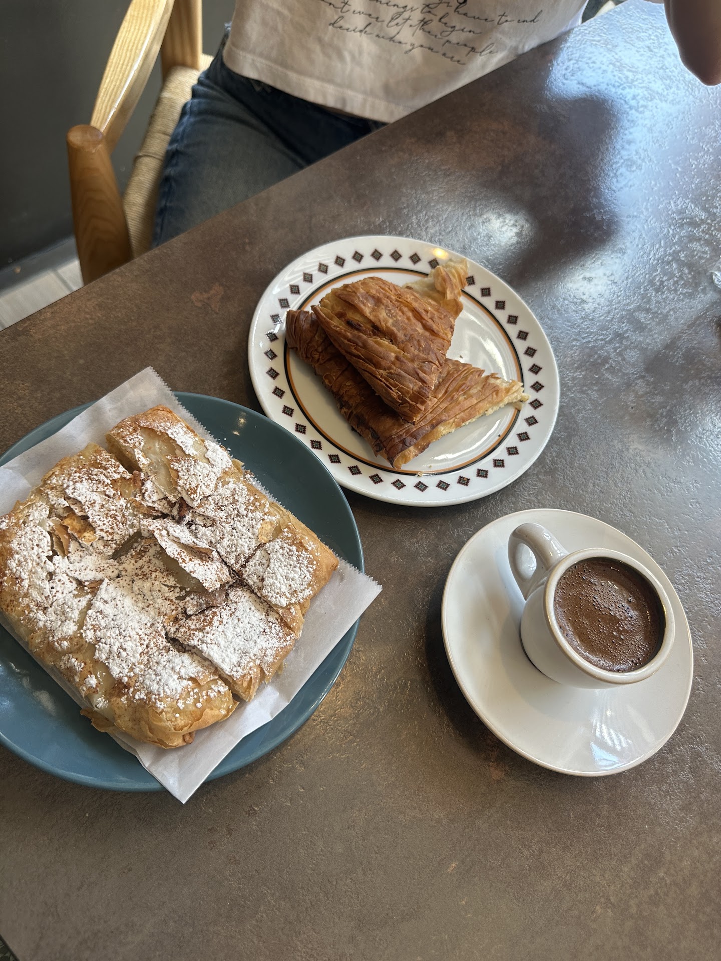 Update 2-5-24: today I went in and ordered the spanakopita and also Demetrius recommended this pastry. I don't remember what it was called. I think it started with a b. But it was layers of phyllo dough with chocolate and nutella between the layers. He said he just got some fresh out of the oven. He didn't have to convince me any more than that. And it was.... amazing. I also appreciate it that he cut it into little pieces because he saw that I was in there with two friends. I also love getting the baklava latte. It is so...