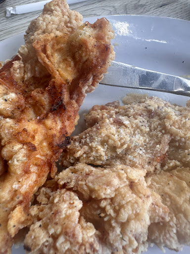 Well, this was very a bad decision! I ordered fried chicken & stuffed peach French toast. My mom ordered grits, eggs & sausage. Iāll just jump right into it and admit that I have NEVER tasted such bad food in my life! My mom was so upset at her food she said NOT A WORD! . The grits they provided, were so watery like soup, and her sausage meat was pink inside. She sent both plates back and when they returned, it still was pink inside and the grits were still VERY WATERY. She was done!
