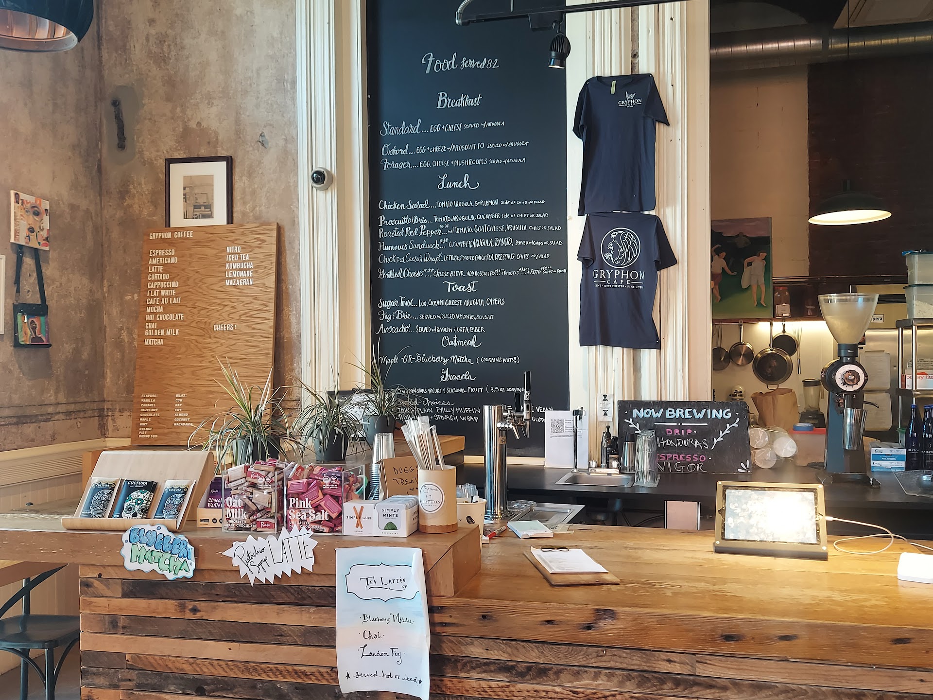 Read moreGryphon is aesthetically pleasing with high ceilings, concrete floors, and music is playing softly enough to work or study, but loud enough to add to the atmosphere. The guests here are considerate of their surroundings. They all seem to keep their conversations to a soft chatter being sure not to disturb those working or reading around them. If you prefer to sit outside they have an outdoor seating area. Also, there isn’t too many people with children who dine in. If you are looking for a nice cafe to get some work done without being distracted, Gryphon is the best...