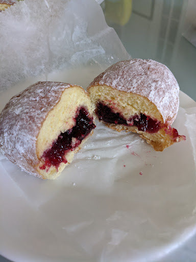 Read moreWe stopped by here because I've been craving for a fastnacht styled donut. My coworker brought the fastnacht donuts in previous years, and it was so delicious and fluffy and satisfying! Though it's not Far Tuesday yet, I went in hoping that they have something similar. The bakery is on a corner in a residential area. We went on Friday afternoon and saw plenty of street parking. We went in and the lady greeted us immediately. I asked about the donut and she suggested their jelly donuts and cream donuts would be the closest to the fastnacht. I also saw what seemed to be chocolate glazed donut. She said it is actually chocolate cinnamon and different than the fastnacht but still pretty tasty. So I got one each. Then I saw the bee cake, and asked about what it was. The lady explained to us and we decided to get one to try. She was so nice and gave us two! We got home, and had the donuts first! The jelly donuts and the cream donuts are delicious! It's not quite the texture of the fastnacht but so close and just what I was looking for! The jelly filling was nice complement to the sweet dough. The cream filling was sweeter but very light. The chocolate cinnamon donut was definitely more like a typical chocolate glazed donut. It was still really good. We had the bee cake a couple days later. It has a cream, almost icing-like, in the center and cake on the bottom and top. On top of the cake, there is plenty of almond soaked with honey. It was delicious but it was a bit too sweet tool my taste. It would pair well with a nice pot of tea though. The donuts were so good and now I cannot wait for fastnacht day and indulge in the only...