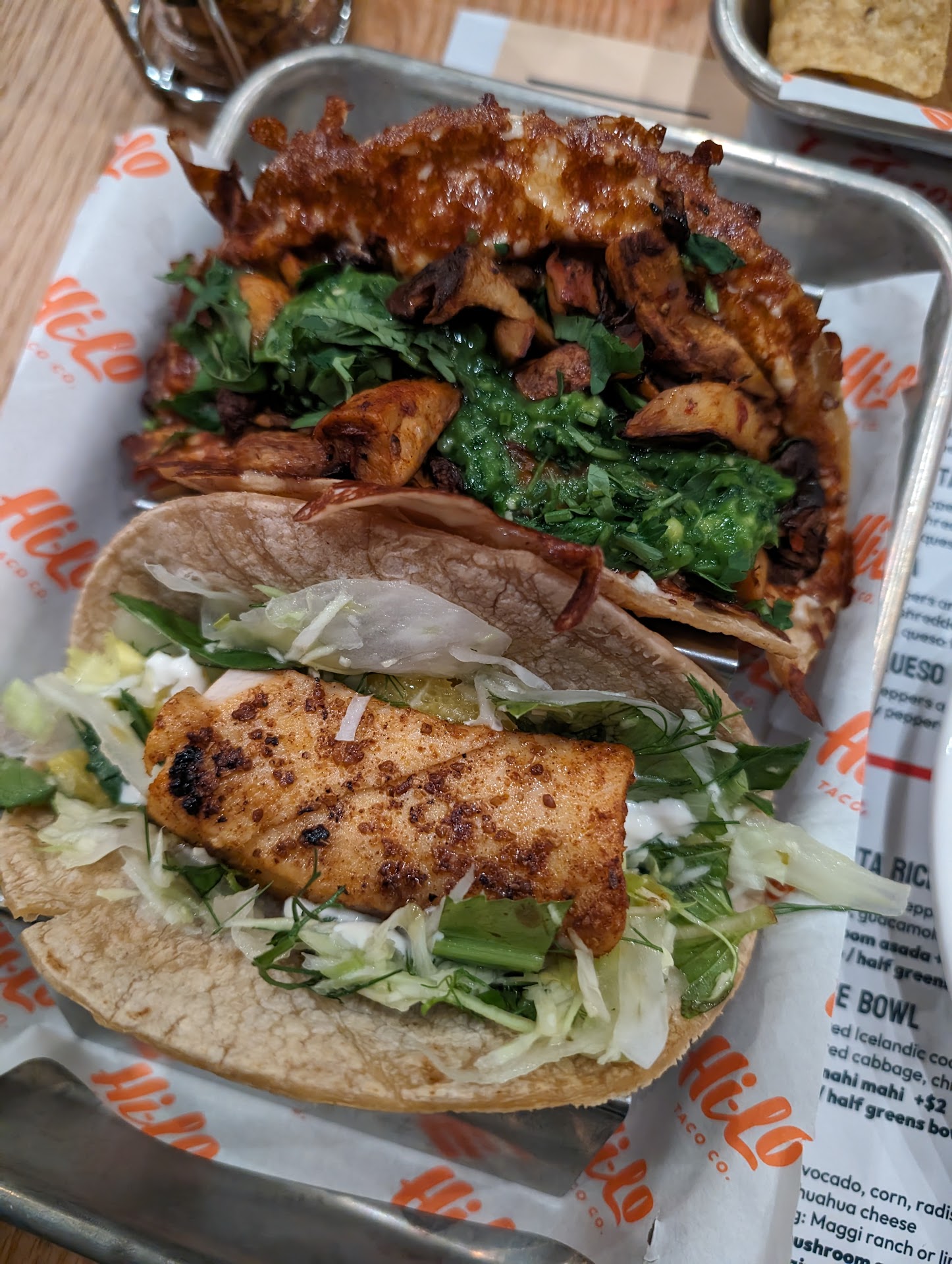 The food. Phenomenal and consistent. I’ve tried every taco on the menu. Obviously, I have my preferences (aka Hilo hot cauliflower and BBQ taco), but each taco is unique and flavorful. Their weekly taco special excites me each week: I look forward to the announcement and seeing the new creation each week.