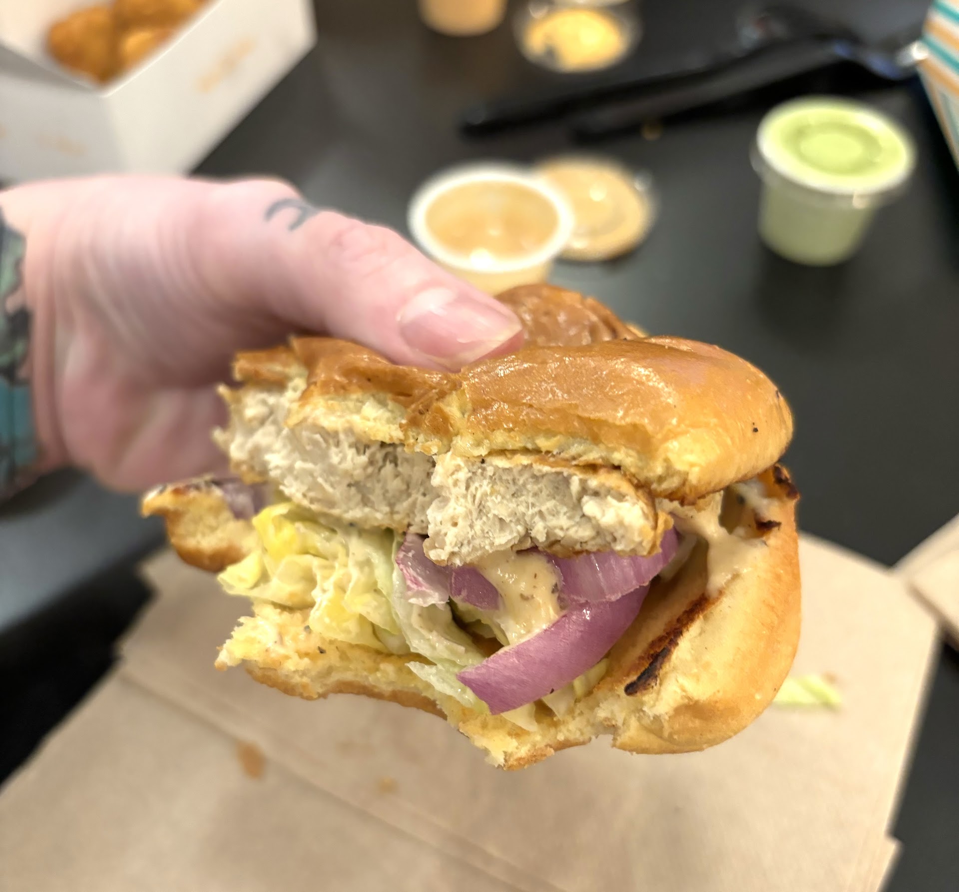 Not wanting to be a stick in the mud, I gave the new items a chance and was put off. The mushroom blooms were incredibly greasy and lacked any real flavor. The bottom of my bag literally looked like I dropped a bottle of water on to it. I actually got scared that I had somehow spilled juice inside of it. Still, I tried some and couldnât even finish them. Texture was bad and it was just a mouth full of of grease. I paid money to pitch them right in the trash. Green goddess dressing was meh, nothing could mask the awful taste of the mushrooms.
