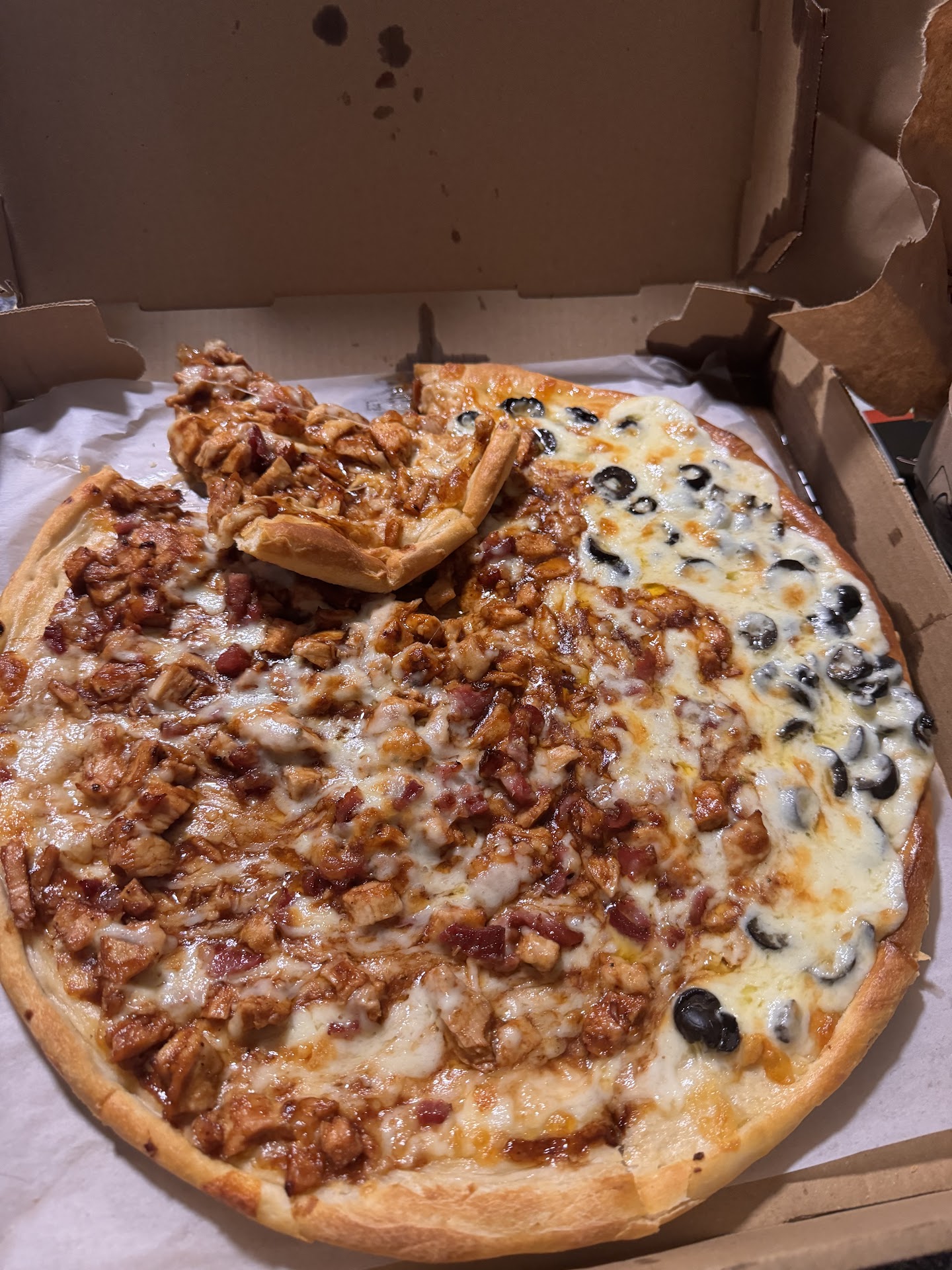 Honestly all around a terrible experience, I ordered from Holme Style Pizza for the first time last night via the app slice. My order was a large 1/2 pineapple pizza, French fries, a piece of cheesecake and a chocolate milk shake. Shortly after placing the order we got a call from the pizza shop saying they were out of milk and couldn’t make the milkshake, the woman asked me if we wanted to sub the milkshake out for something else and we said no, to which she seemed very annoyed and tried to push the issue, we again politely said no. She then offered to send one of her drivers to go get milk but said she was also out of chocolate ice cream so we had to choose between vanilla and strawberry which we again politely declined and just asked for a refund for the milkshake that we weren’t doing to get, she then proceeded to hang up on us. When the food got here the pizza was not a large it was a medium, despite being charged for a large. The French fries were okay, but there was no cheesecake which we still wanted and had already paid for. The food was overall average, I’m not a fan of shops that rip people off, if I’m paying almost $15 for a large pizza I expect a large pizza...