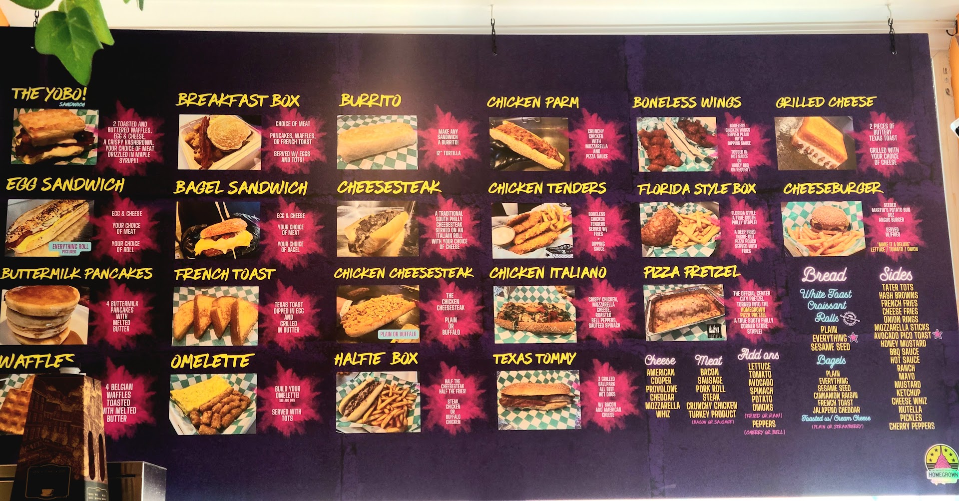 I stopped in HomeGrown215 this morning after my doctor appointment at Methodist Hospital. I live on the other side of Broad so I don't usually venture over that way, especially in the morning. I'm so glad I stopped in - I was shocked at how cool this place is. It's small, but cozy and has a bunch of great Phillies/Eagles art and memorabilia on the walls. The staff was friendly, welcoming and kind. Service was fast, food was delicious. I got a bacon egg and cooper sharp on an everything bagel and an iced coffee. the sandwich was big and delicious and the coffee tasted fresh. Then as I was eating I noticed on the menu that they had an everything STEAKROLL and I was like OH SHIT! lol so i got my boyfriend a sandwich to-go to take home. I have never seen an everything steak roll before. The staff offered to keep my to go order warm/the coffee in the fridge until I left. So glad I stopped in here. I let the staff know how awesome the place was and left some money in their tip jar. HomeGrown215 managers, your staff is lovely - they deserve praise and rewards! Will definitely return/order delivery...