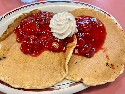 Read moreThey told us when we walked in that it may take 30 minutes to 45 minutes to get our food. We waited 1 hour and 20 minutes for our food.. when we got it.. half of the food was cold.. :( Not kool and my eggs weren't cooked the way I asked.. if we are going to wait 1 hour and 20 minutes. I expect the food to be TOP NOTCH if you had 1 hour and 20 minutes to prepare and make it. The place was packed! Packed! Good for them but maybe they need an upgrade? Or more workers? Something. The service was very good other then my order being wrong a little. The lady gave us. Discount. Thank you. Other then that.. the toilet was broken.. soo that many people and no bathroom? Not good. The atmosphere was loud, VERY hot, uncomfortable.. table was not the cleanest. By the time we got our food the drinks were melted down and hot.. I rate it a 3 just because the service was very very good. Thank you for trying your best workers.. not your fault you don't have a larger work place and better help. Also.. this is a breakfast place and no? Chocolate chip pancakes? I came just for that! Yeeah.. I'll come back next year and see...