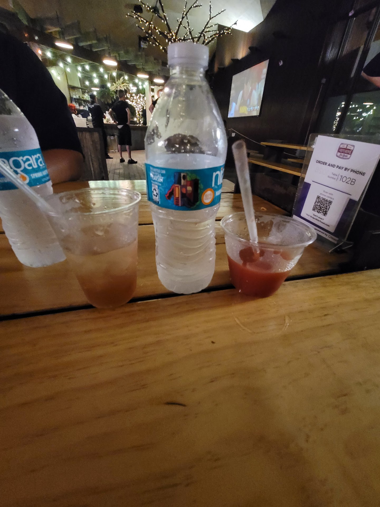 When the first round was delivered, we asked if we could get water and were told that someone would be around. No one ever came. Some tables with large groups had pitchers of water but it wasn't clear how they got them. There was a $4 can of water on the menu but I didn't want to pay for water. On a hot day, it should probably just be delivered with alcohol. They used to have self-serve coolers but I guess they took those away to avoid people crowding around them and/or all the touching.