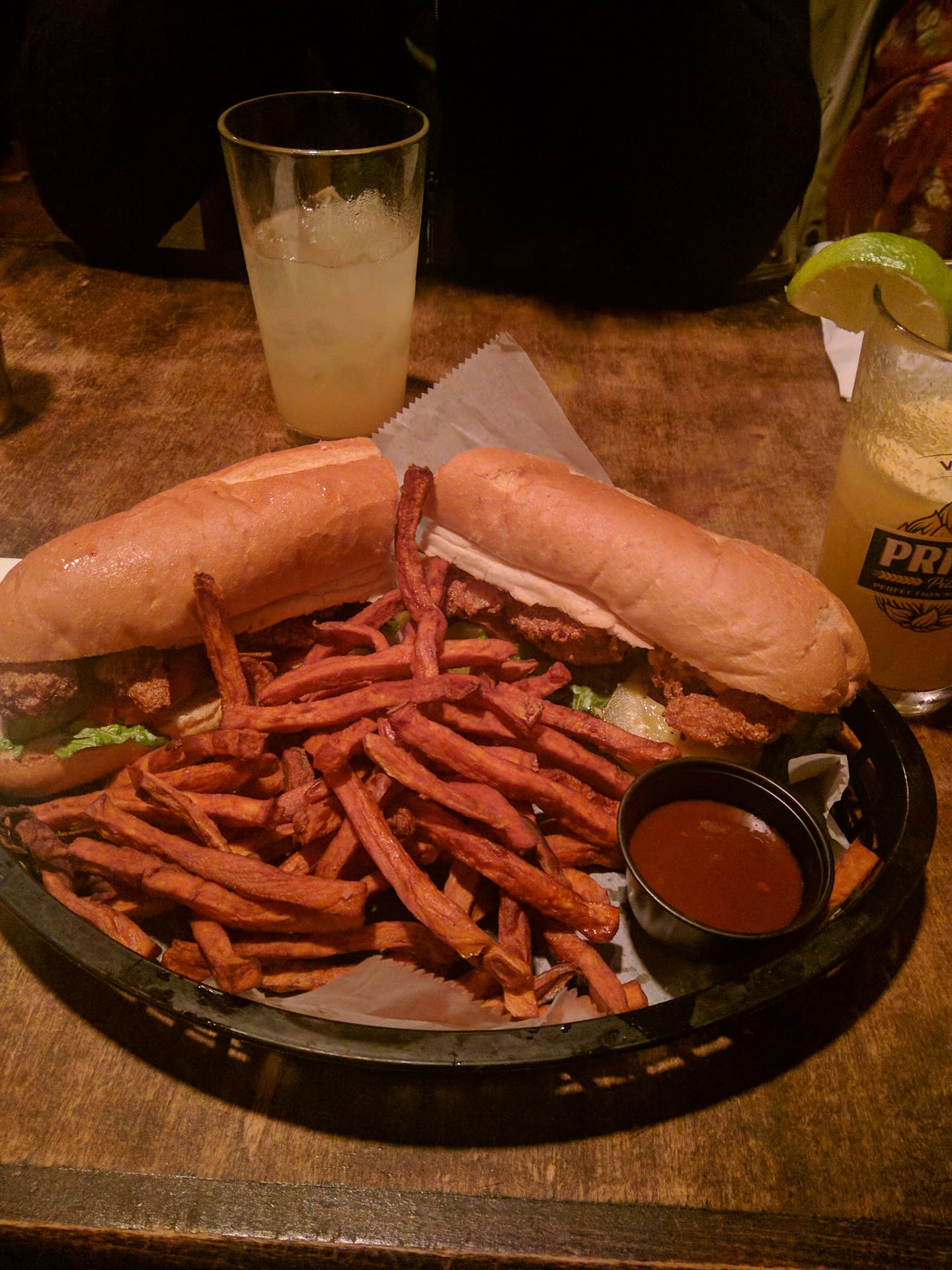 The server was great! She was very personable, attentive and accommodating (a friend took a sip of the drink she ordered but didn't like it, and the waitress easily swapped it out for her with no issues). Service was pretty quick. I enjoyed my drink (Interstate Brainfreeze) & my food (Shrimp Po'Boy w/ Sweet Potato Fries).
