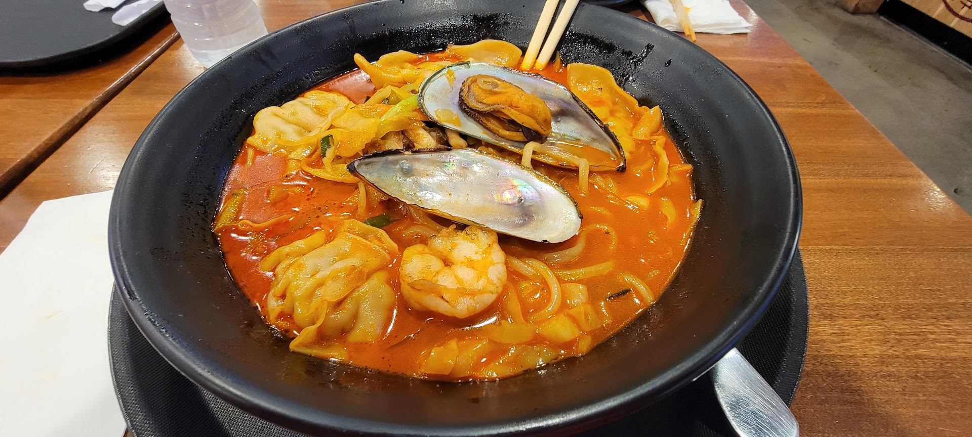 I have eaten hundreds of jjambong in restaurants all across the United States. I cannot believe the best jjambong I have ever eaten is in a tiny H mart food stall. You can taste the ‘wok hey’ smoky flavor in every bite. Both the soup base and noodles rival that of classic Chinese restaurants in Korea. The quantity of seafood is acceptable for the price. Their jjajang is also very good.