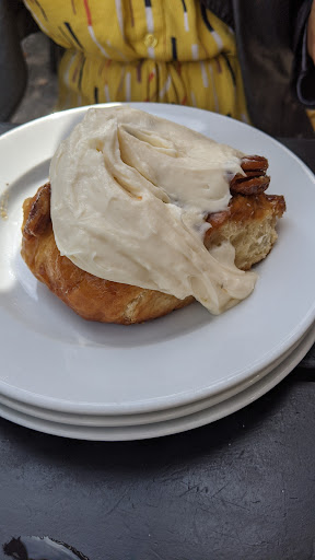 Once our waitress came over - she was very polite, friendly and helpful when we asked her opinions on menu items - we put in our order. For drinks, I got an Apple Cider Mimosa and my friend got a coffee. To eat, I got the Southern Fried Chicken Benny while she got a Sticky Bun and the Fried Eggs & Avocado Sandwich. I usually don't get bennies or anything with poached/runny eggs so went out on a limb here and it was actually really good. The chicken was well seasoned, the biscuits were fluffy to help sop up the eggs - it was so filling! My friend said the sandwich was ok, but she did really like the sticky bun. At the end, we were stuffed from all the food.