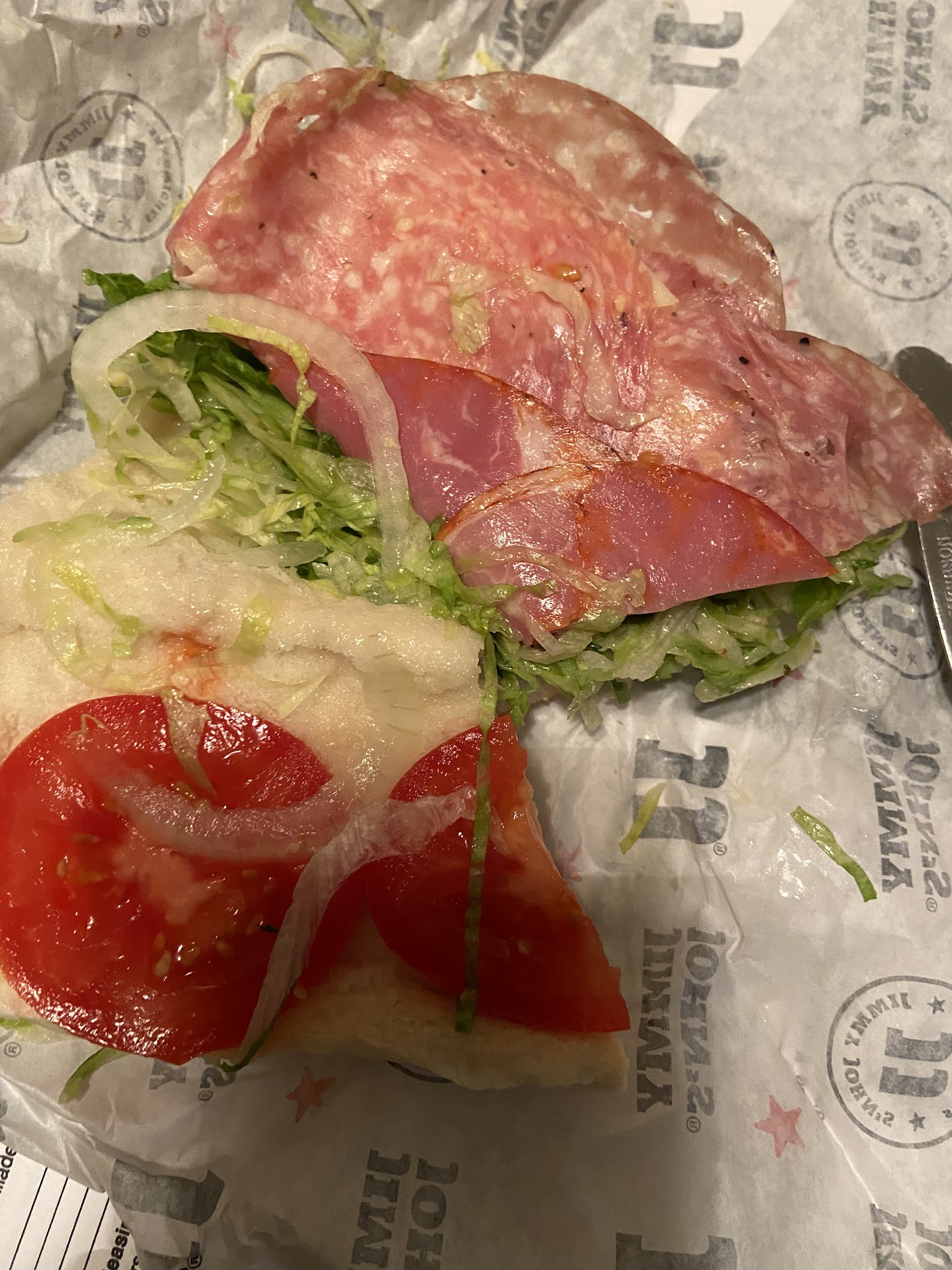 Read moreFood 2 Stars Service 4 stars.. except the person who made my sandwich ... they Get 1 Star today.. Let me first start off by saying turn that horrible music, the hell down, so I can hear you tell me that I only get 3 pieces of meat in my sandwich.. but the people are nice .. except ye who made my sandwich... ... Second I understand why Jimmy John's is so quick, I would be that quick too if I only put three pieces of meat and shredded lettuce, onions and A tomato on the sandwich. Two drinks and a so called Italian sandwich for roughly $10.