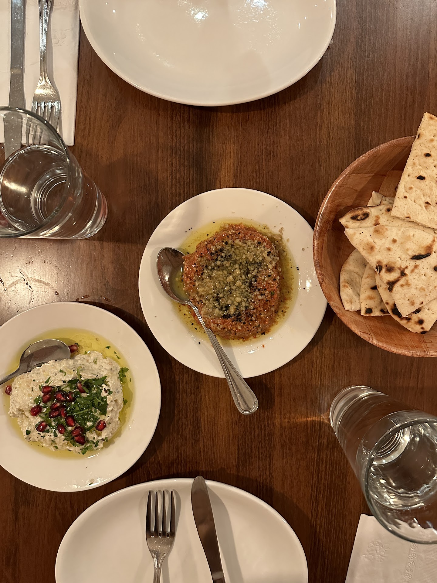 In terms of food: Appetizers: humus, tzatziki, brussel sprouts and the shepherd salad were great. i personally would skip on the muhammara and mutabal, but there were people in my group who loved them. FYI the tzatziki served is actually the turkish equivalent “cacık” which makes the dish a bit more runny, and not as “dippy” as greek tzatziki
