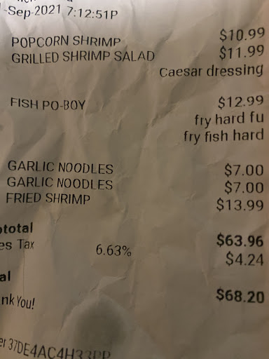 Food was mediocre at best. But the price is something you’d see at a 3 Michelin star gourmet full course seafood restaurant. Some of the employees were helpful but the food was just not it. Not sure why the owner has such a massive ego. My fried flounder was burnt and half of my fried shrimp were burnt and the other half was just not cooked. I left without making a big deal out of it because I knew I wasn’t gonna be returning anyways.