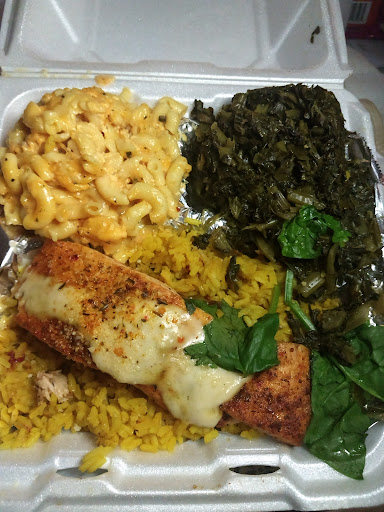 ORIGINAL REVIEW. Wanted just salmon and rice however I was told I had to get 2 sides for $16. Waited about 45 min order came out with the one wrong side. She apologized and fixed the order. Now the portions are very small for the price. Salmon and the little bit of rice was delicious. However they put foil in the platter so you run the risk of eating foil if you are not careful. As for the sides, Mac n cheese looked very dry (that was the wrong side so didn't taste it) had greens and yams. Greens are very dry and spicy thats the only flavor on them. Yams were so dark and hard you can't even tell what they are. I try to support my people but when you let food like this come out the kitchen it's clear that someone doesn't...