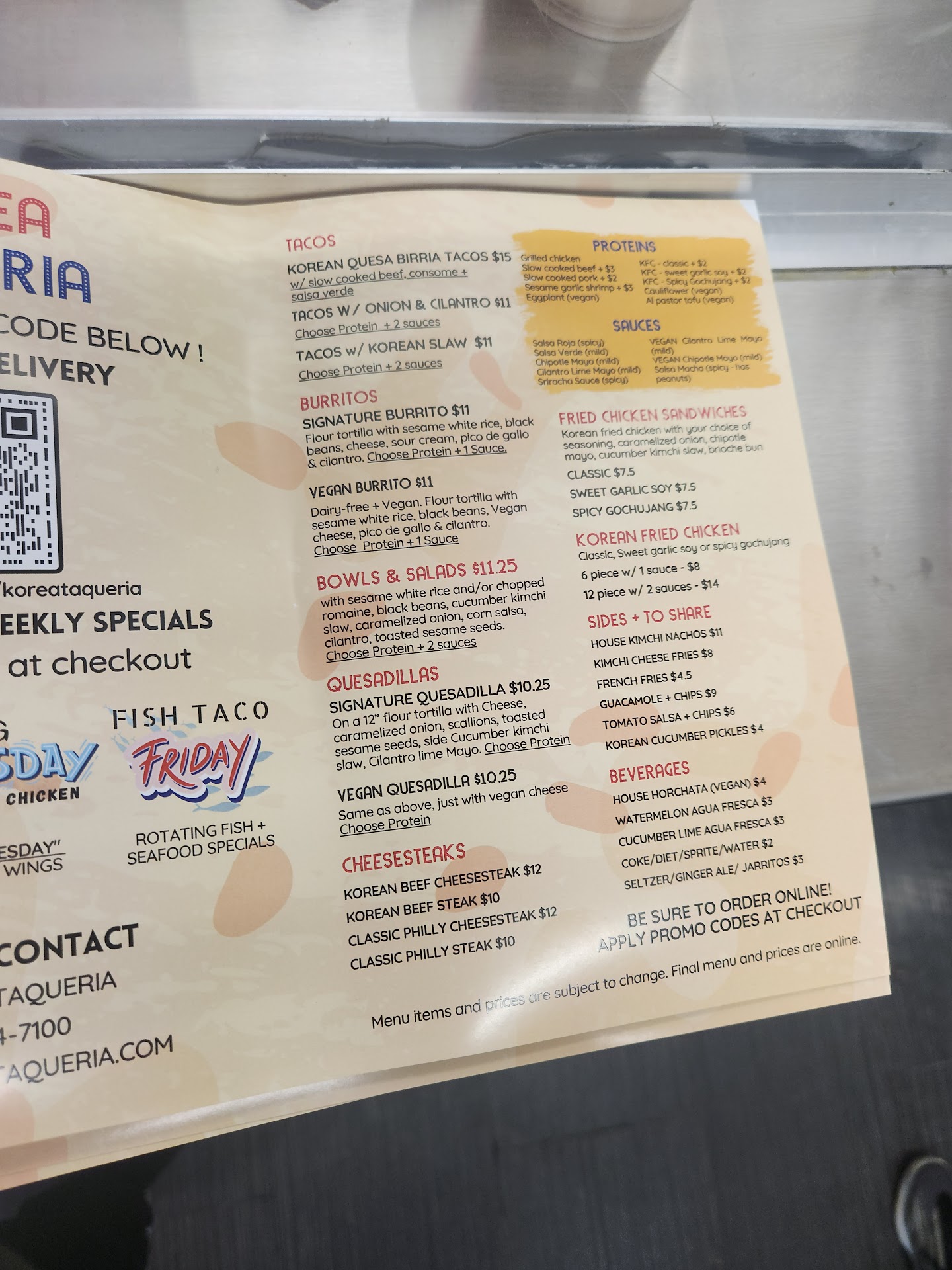Thank you so much Korea Taqueria for serving up some of the best tacos and wings and for having such an integrity driven business. You shut me up real quick lol and I will always be a loyal patron of your business! You guys...