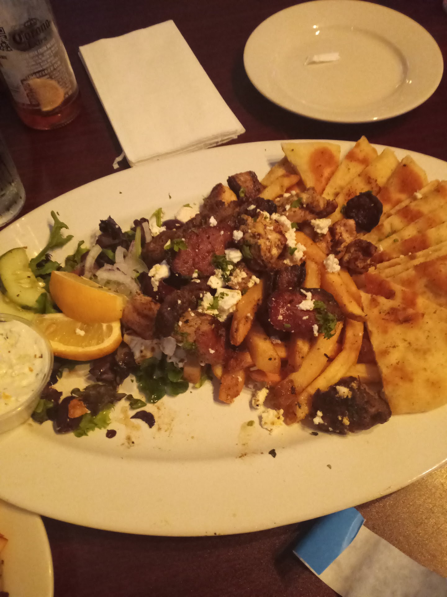 Read moreFour of us shared a FEAST last night on the patio (the very dark bar inside didn't appeal for dining). It was a lovely late May night, with perfect temperature for outside dining. The food was all DELICIOUS!!! Moussaka with a beautiful thick layer of bechamel, Horiatiki (Greek salad) just like you get in Greece - with ripe tomatoes, cucumber, nice chunks of tasty feta, kalamata olives, bell pepper...and the dressing comes on the side - which is nice for those who don't like alot of dressing but was so delicious I poured it all on! Spanikopita was AMAZING! we split an appetizer serving and I could've eaten it all myself! Skordalia was loved by everyone at the table (tho I like mine a little creamier - a different type of potato perhaps?). Baba ganoush, fresh & tasty was served with excellent seasoned & lightly oiled (grilled) pita wedges that we couldn't stop eating!