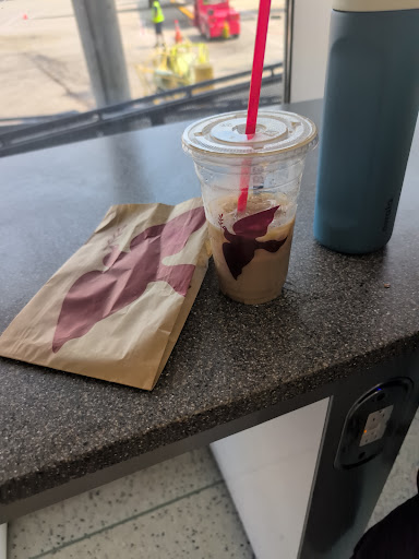 I went to this terminal instead of F because the line in F was quite long and not moving too fast. I ordered a large iced dirty chai tea latte and an almond croissant, they had my drink ready before I could finish paying and my croissant by the time I was done. The croissant was flakey, lightly sweet and delicious- the chai had light spice, they accommodated my need for oat milk and it was nice and icy (which is great because the E-F connector was toasty). The staff was kind, made eye contact, asked follow up questions to ensure everything was what I wanted, and even though I was one of many they made me feel like I was the only one there and not just another coffee order. I travel often and will be sure to stop again on my next layover/flight! đ (The croissant is not pictured...