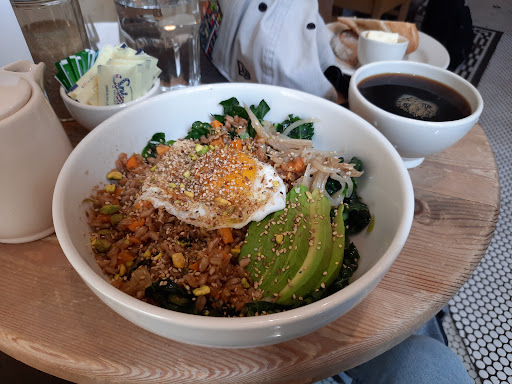 Read moreIt is difficult for me to review this place. The atmosphere expressed through upholstery is great. Wooden chair, huge and bright windows, nicely presented pastry items in the cupboard, various types of gems and seasoning on the table, everything I can see levels up my expectation. But that’s where the good news ends. Servers are not very attentive to people. I have to raise my hands to a third time so that he can see me. There was a time he was walking right in front of my seat and missed my call; I ended up having to hint the other server that I would like to talk to him. For the food, they were fine but not impressive. Coffee is not served in a traditional cup but comes with a set of a jar and a cup. The set itself has aesthetic value but not pragmatic utility. The cup has no handle, which makes me have difficulty enjoying hot coffee. So I have to wait till it cools down a bit, but come on, who likes lukewarm coffee? For the skillet baked eggs, avocado, tomatoes, and feta cheese all add nice flavor into the dish, which is a plus. The only trouble is the bread, which tastes absolutely stale. Though looking fresh, bread is hard and dry. With this being said, it is not over toasted, since it is not toasted at all, but left to dry? Overall, the astonishing dining environment does allure me to anticipate a wonderful experience to come, the actual food and service creates...