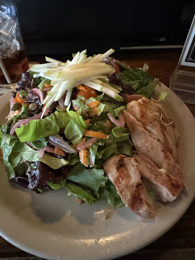 Firstly I have driven pass often and wondered if this spot was poppin....I thought it'd be great for a wknd brunch or a quick lunch spot. Me & my co wrkr stopped in, to my surprise she doesn't drink...my Bad however we settled in for a quick bite/small plate.She ordered a Sprte spritzer w/ a hint of cranberry juice and I ordered a whiskey sour...it was not good. In fact their house drink calls for a splash of red wine on top....at 1st glance it looked appetizing like a desert drink but the wine taste was heavy like a merlot so Not a good drink, my friend ordered the caesar salad she asked for dressing on the side. She thought their dressing was too thick and mayonnaisey, to their defense, I liked it.. it was a lil thick however it had a creamy garlic base and possibly I'll try it another time . I ordered the chicken waffle sliders, it was totally underwhelming the waffle was cold, didn't seem fresh, soft or anything like a waffle, the syrup was watery, the chicken thigh was underseason and slightly undercooked ...it freaked me out a bit..so I was done. We did sit outside, we enjoyed watching the locals & I must say the...