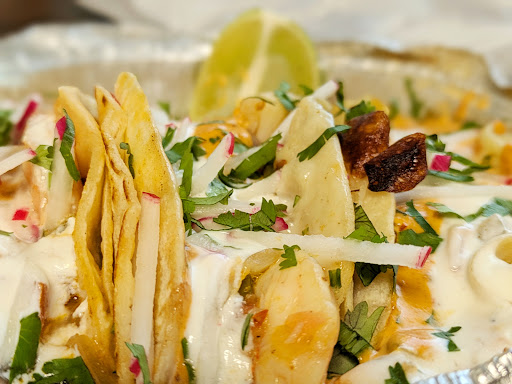Think of this as the indulgent (bougie?) Mexican food truck. The food is more like what you'd get in a sit-down restaurant, which makes sense because it takes them a while to prepare it. Not speedy, but not slow either. I ordered the special shrimp tacos and they were great. The roasted poblano flavor was strong, making it clear that they really know authentic ingredients. My tacos were cheesy, gooey, creamy. My fingers were messy and I had to use utensils to scoop up the stuff that fell out of the double soft corn tortillas. Not what you want if you're rushing between classes, or hoping to eat in a hurry. But if you have time to sit down and enjoy your meal, with napkins close at hand, this is a solid choice. Everything is fresh and tasty, with real depth of flavor. They have zucchini blossom and hoilecotche on the menu, too...not your average taco stand. If you're tired of the fast-food-chain-restaurant interpretation of Mexican flavors, this is a...