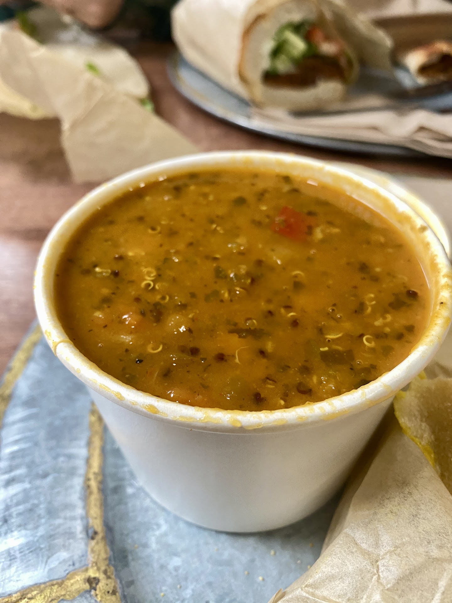 I was fasting and it was my 1st meal of the day it was almost closing time. I expressed to Ross that it was my 1st time there. Never order food when you are hungry, because I order everything. Ross let me sample both soups. I liked the sweet potato one better but mixed was off the chain. So I ordered a half and half . But I only got the sweet potato I ordered an Italian hoagie with everything lol cause I'm starving. I order the grilled cheese with pasta salad. The coffee cake and the Brownie, with the tip, came to almost $40, I noticed that he was having a hard time slicing the roll after nooking it. Needless to say, the bread was so stale it was not edible. Very disappointed, Ross said they ran out of today's batch of fresh bread. I live alllll the way across town and have to decide as to take back over $20 worth of food or chalk it up as a loss. By the way, the $5 grilled cheese was the best thing I had, The brownie had an aftertaste but I liked the coffee cake. What do you suggest I do? Ross was super cool but could've suggested a sandwich or a different bread option. He knew it was not right. His last words were don't judge us because of the bread. Shame on you Ross. STALE AND...