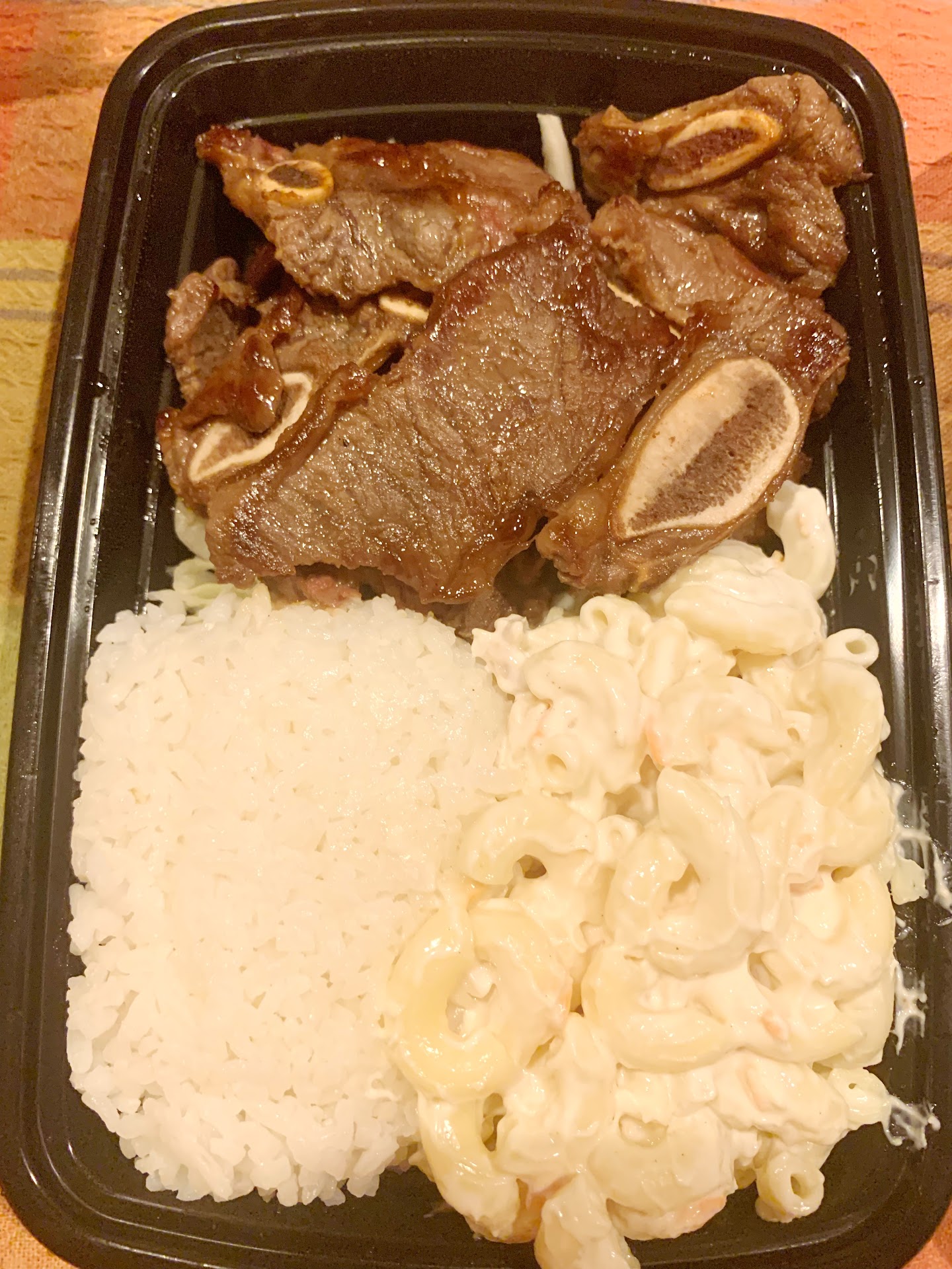 I don't particularly like pork or chicken thighs, but I was all over the Kahlua pork and bbq chicken and chicken katsu misubi. My husband hates mayo, and he LOVES the macaroni salad. That's how good everything is!