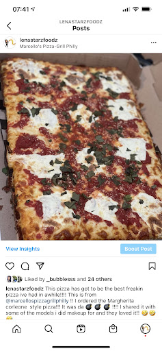 Read moreIf you don't want to read a long review. Just order a Corleone Style Pizza. Period. You won't regret it! Long review to follow: I was away from home and decided to order from this place based solely on their 4.7-Star rating. Marcello's appears to be a family owned pizza joint. Take-out only. You can just tell they've been around a while and I'm guessing they do a lot business. It just has the looks of a place that can really get crankin! The place was clean (not sparkly) and smelled of pizza! I ordered from the Corleone Style Pizza menu. And I can say that I'm so glad I did! The best way I can describe the Corleone style is Sicilian style, but the crust is not thick like most places. It is what I would call a medium thickness. It's a rectangular crust with cheese melted all the way past the edges. So, no crust. Which I particularly love!!. And the cheese was nice and browned and crispy! First, the Carini (think Meat lovers): Big chunks of sliced meatballs, sausage, pepperoni, and garlic! Great sauce. Not sweet. Not too acidic. Absolutely amazing! Second, the Buffalo Chicken pizza: Lots of grilled chicken, cheese, and a creamy buffalo sauce. I would say mild to medium heat level of sauce. The crispy cheesey edges and airy crust just takes this pizza over the top! Highly recommend Marcello's. The guys behind the counter were very friendly and nice. I started to give just 4-stars for atmosphere because the place could use some freshening up, but I changed it to 5-stars because the guys behind the counter were so friendly and conversational. That level of service is often lacking these days. Not sure when I'll make it back to Marcello's as it was about 30 minutes from home... But I would make that drive just for this...