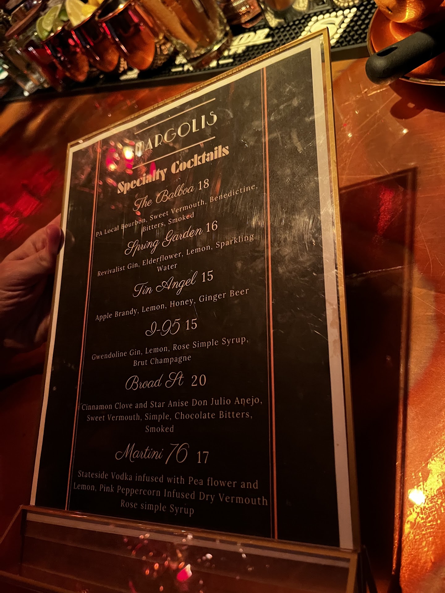 Read moreWent to this place from Punchline Philly. Drinks were excellent and priced 15-18$ for their signature cocktails. Atmosphere was amazing. Low light with moving almost lava lamp esc wall accents. Big couches and lounge chairs for seating as well as stools around the bar itself. Kinda out of the way of all the busy part of the city. Would definitely recommend...